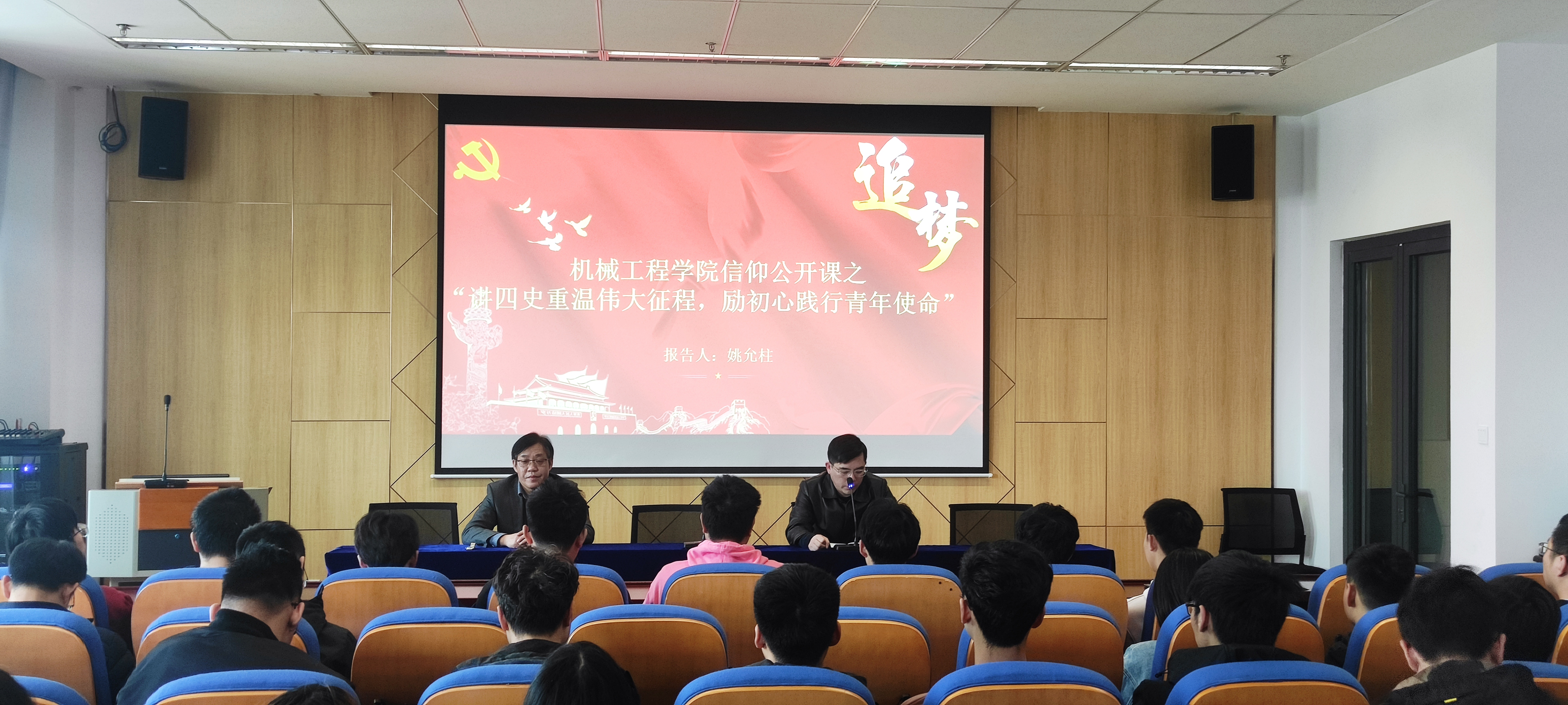 为了响应学校党委和团委关于建党100周年“党史”学习的要求,机械工程牛彩网 团委在党委的指导下于3月25日下午,邀请马克思主义牛彩网 的姚允柱教授在机械楼426学术报告厅开展“讲四史重温伟大征程,励初心践行青年使命”信仰公开课,机械牛彩网 党委副书记翟纯纯出席并主持报告会,牛彩网 新入职青年教师和部分党员、团员学生代表共计一百五十余人次参加了报告会。