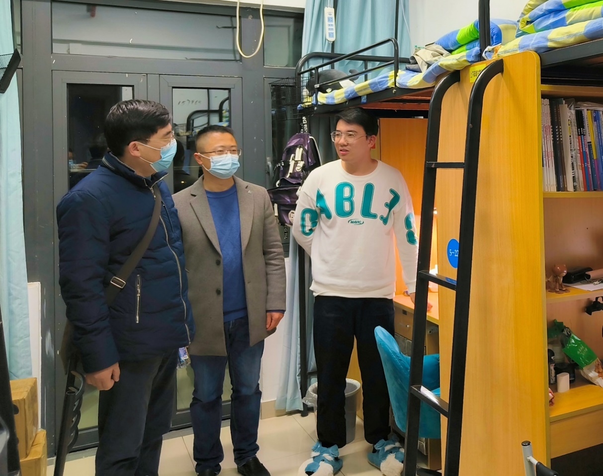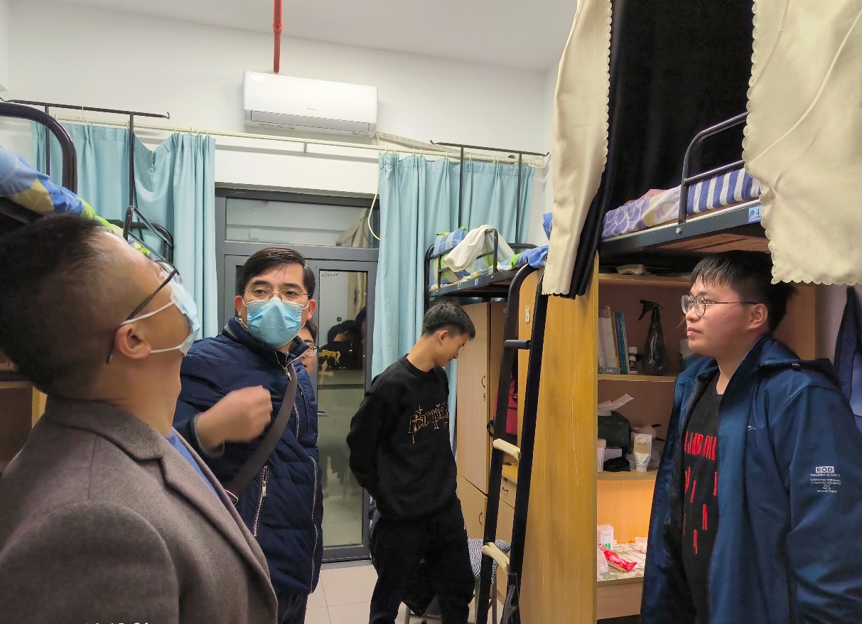 为切实做好疫情防控新形势下的学生管理工作,及时了解学生的思想动态、心理状况、宿舍安全卫生以及期末备考复习情况,确保学生在校生活、学习和日常管理工作有序、平稳开展。11月29日、12月5日连续多日,牛彩网 党委书记翟纯纯、副院长张建、钟伟与各专业辅导员老师深入学生宿舍,倾听学生诉求,了解近期学生思想动态和实际困难,与部分学生进行了深入交流。