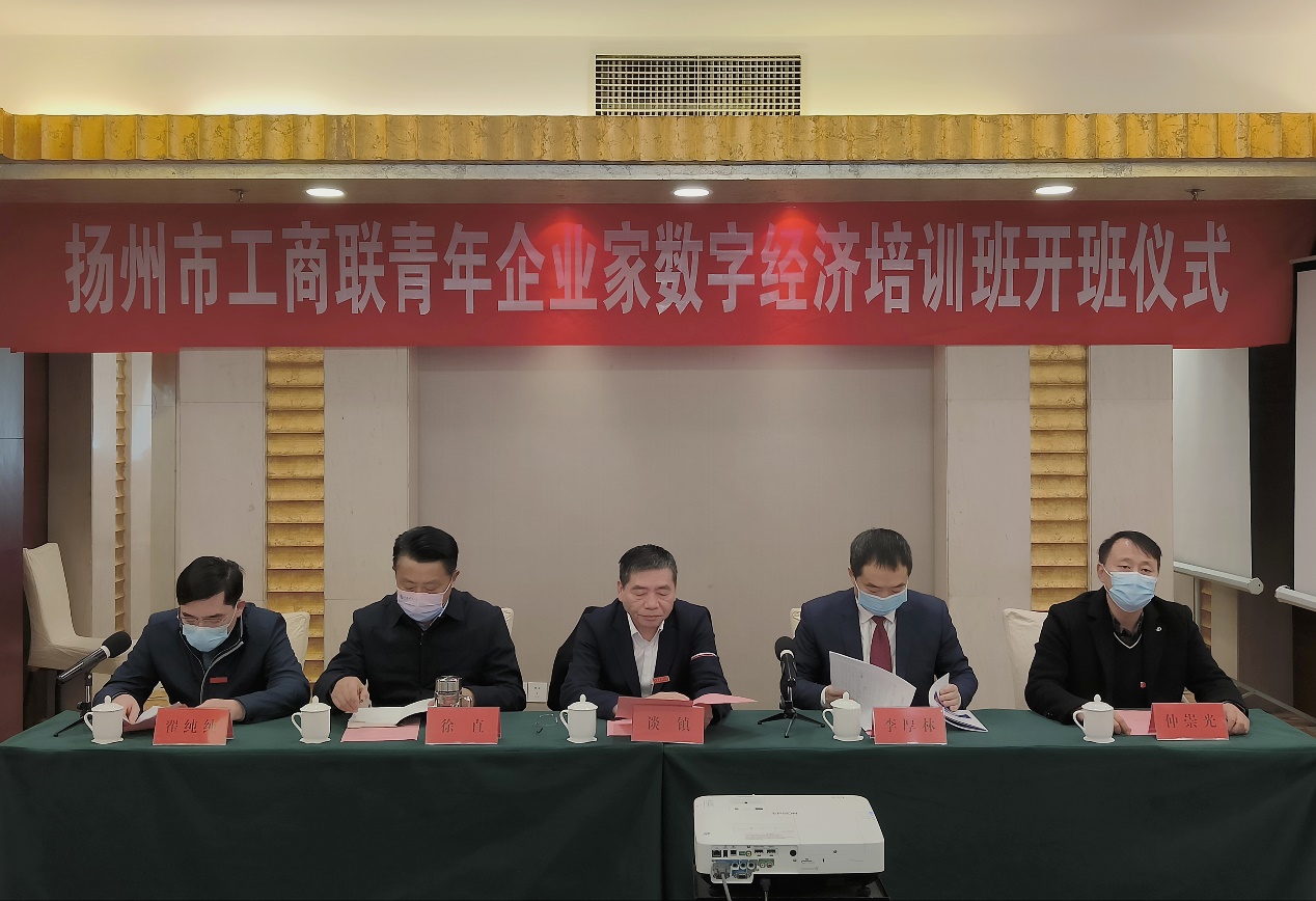 12月13日,扬州市工商联青年企业家数字经济培训班在我校开班。江苏科技大学党委常委、副校长谈镇,扬州市委统战部副部长、工商联党组书记李厚林、扬州市工商联副主席徐直、江苏科技大学继续教育牛彩网 院长仲崇光参加开班仪式,会议由牛彩网 - 牛彩网即时开奖 党委书记翟纯纯主持,扬州社会各界青年企业家代表40余人参加本次培训班。
