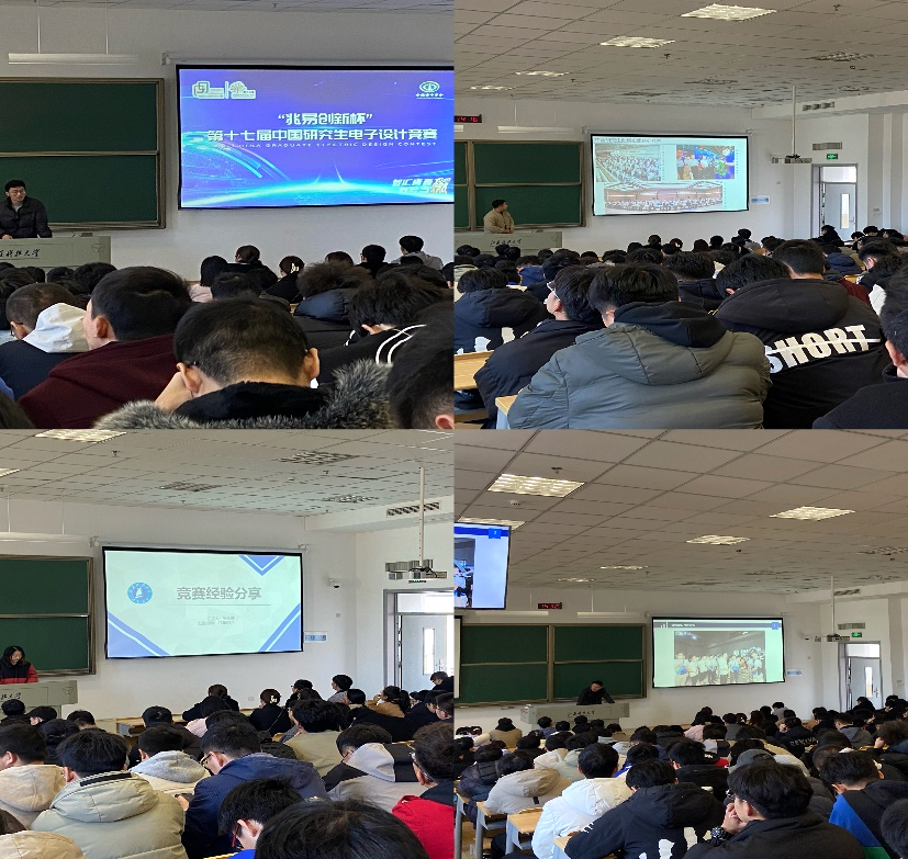 本次竞赛经验交流会邀请了5位中国研究生创新实践系列大赛国家级获奖同学分享参赛经验。20级研究生曹程程、陈珂从参赛流程、注意事项、选题思路等方面对其参与中国研究生电子设计大赛进行了讲解,并向同学们毫无保留的展示了参赛设计作品;20级研究生吴超向同学们详细的介绍了中国研究生创新实践系列大赛各项赛事,并以自身获奖的人工智能创新大赛为例,介绍了作品创新的注意事项,其强调创新应当以满足市场需求为导向,切合实际应用;21级研究生张怡薇从参赛作品形式、技术方案书写、答辩PPT书写等各方面讲解了他们团队参与中国研究生“双碳”创新与创意大赛、研究生能源装备创新设计大赛的经验;21级研究生陶天一向同学们展示了部分参赛现场照片,分享了自己的参赛感受,认为参加竞赛可以扩展自己的视野,提高见识,同时其回忆到参加中国研究生数学建模比赛时,曾见过凌晨三点的学校,并认为参与这些竞赛可以使得自己研究生生涯不留下任何遗憾。