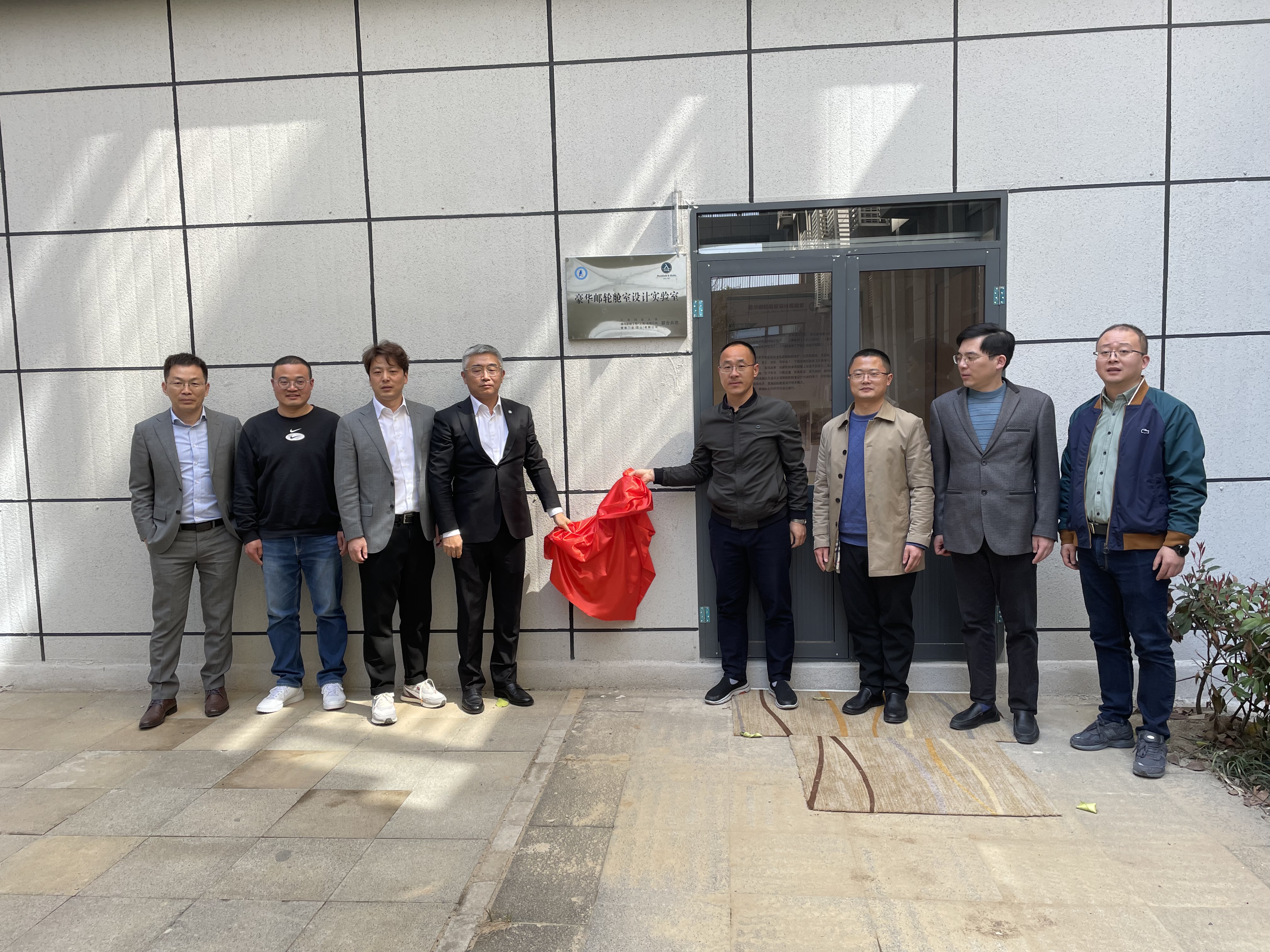 最后,分析测试中心主任兼副处长张志生和邓翔总经理进行豪华邮轮舱室设计实验室揭牌,并共同参观了设计实验室。