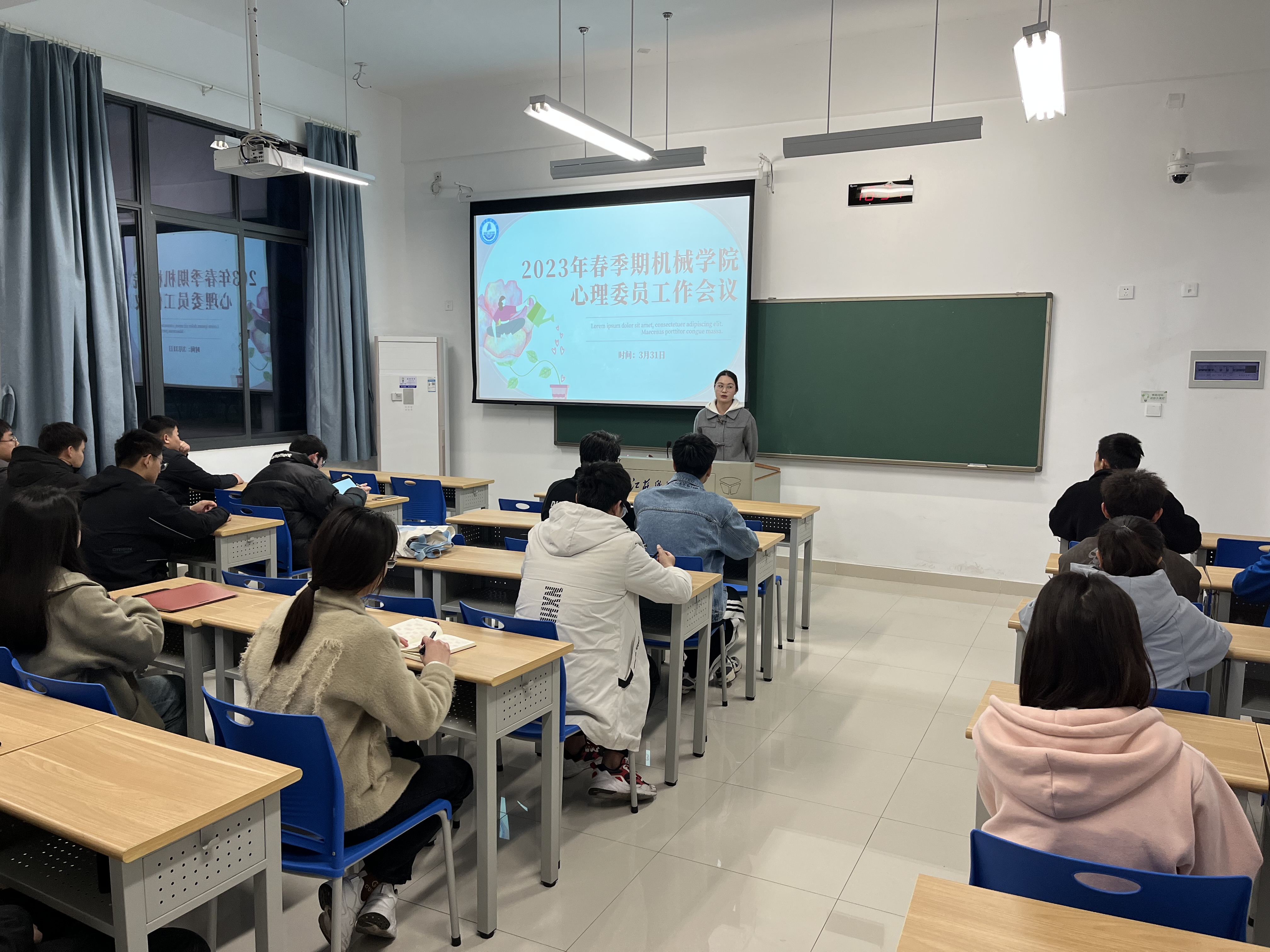 为更好地把握本科生春季期心理动态,有序推进牛彩网 心理健康教育工作,充分发挥心理委员的桥梁纽带作用,机械工程牛彩网 于3月31下午日在经世楼104召开2023年春季学期心理委员工作会议。会议由心理辅导员谭静主持,机械工程牛彩网 全体心理委员参加会议。