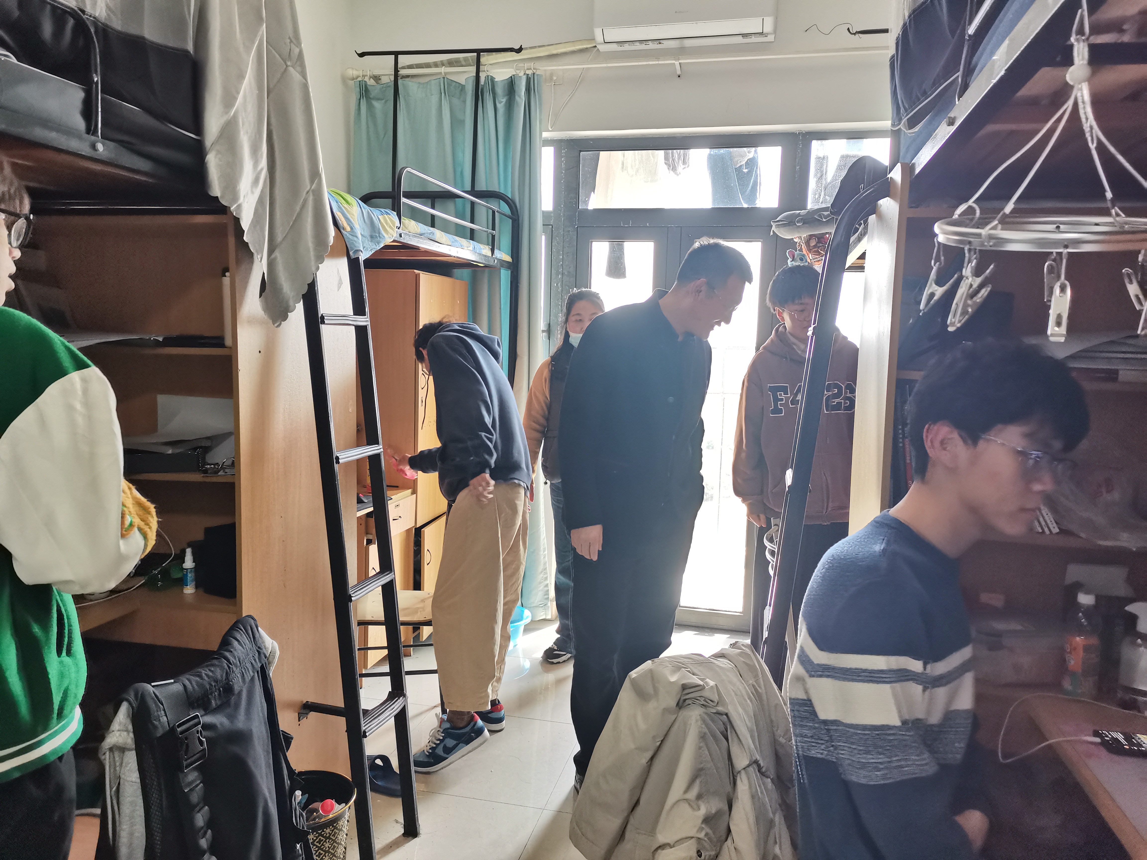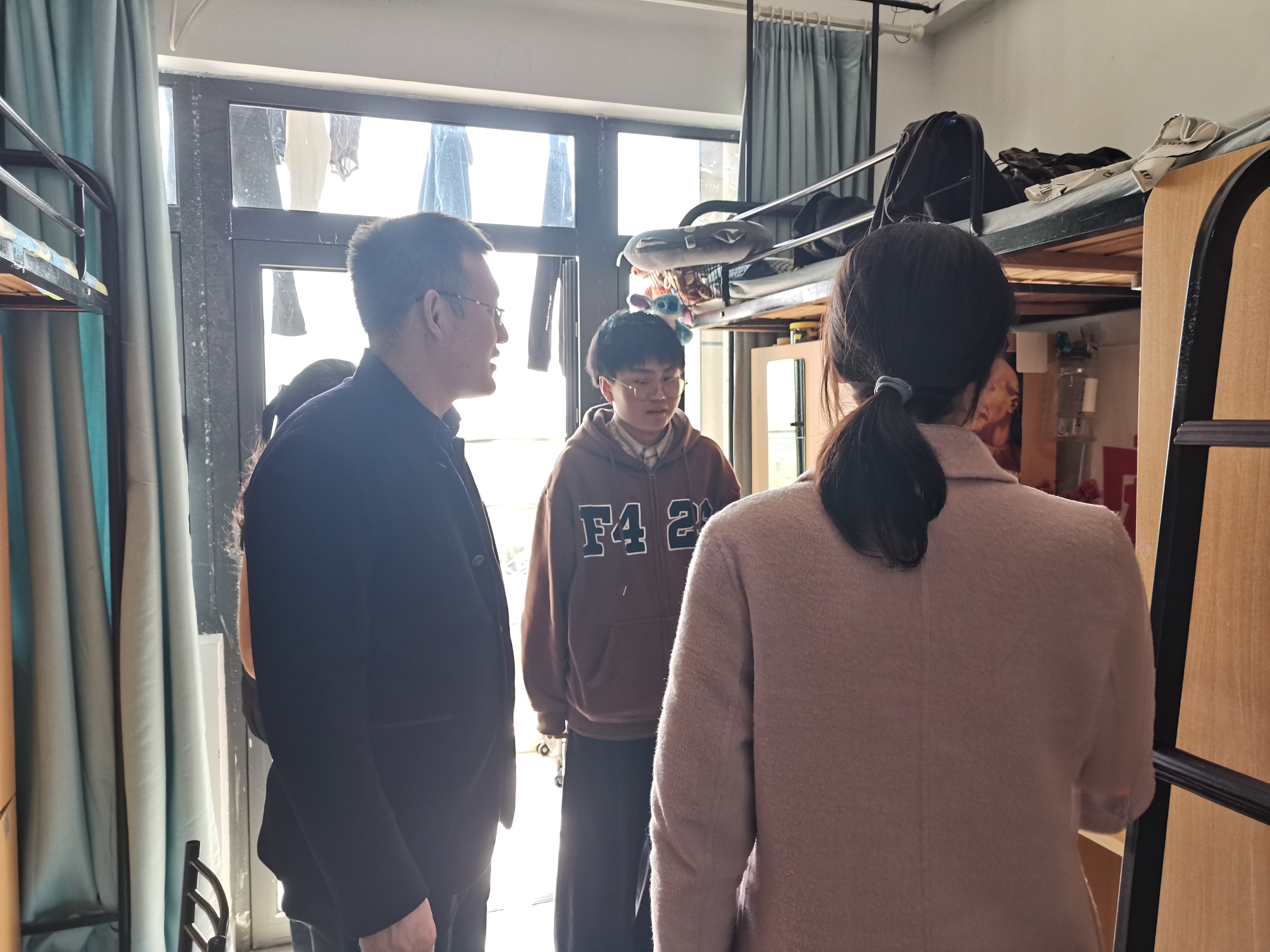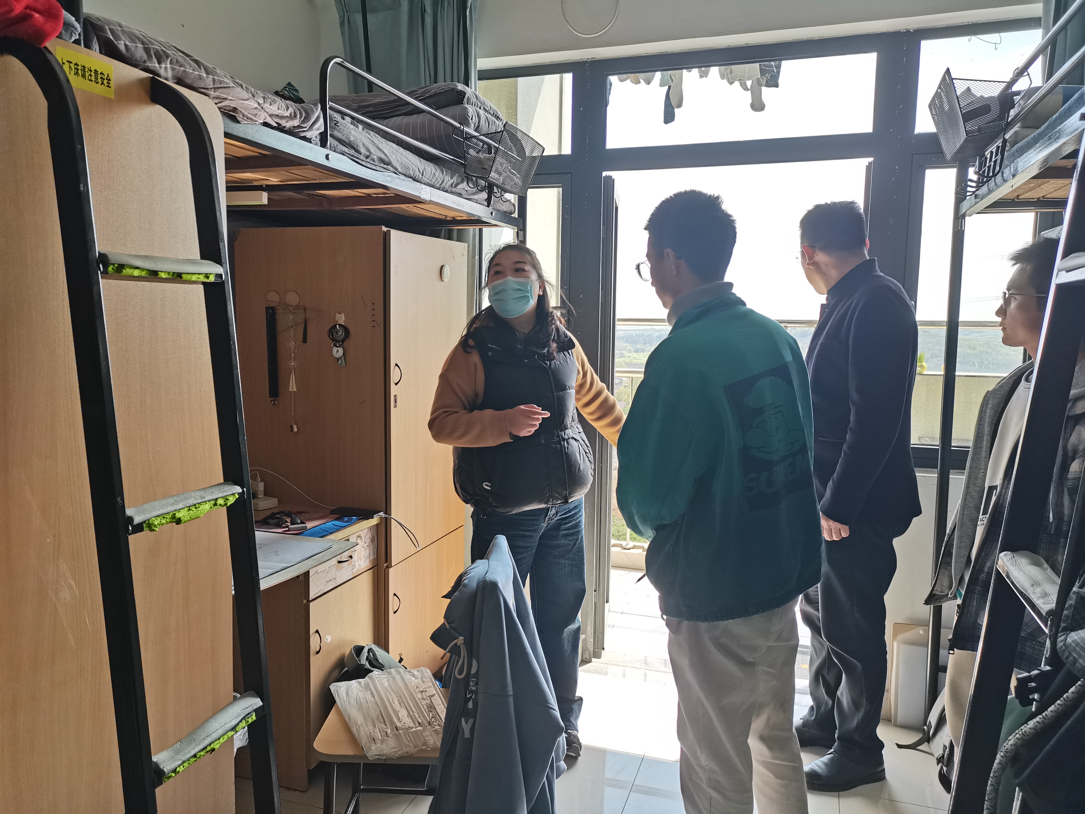 为做好学生宿舍安全教育,加强学生宿舍安全隐患排查,共同营造安全、文明、卫生的宿舍环境,积极推动平安校园的创建,4月7日下午,牛彩网 辅导员李文达、吴堂凤、李福来、谭静一同巡查学生宿舍,从思想动态、专业学习、宿舍安全、心理健康、生活情况等方面与同学们进行深入交流。同时邀请了6号组团安全责任人的组长张娣参与此次巡查,指导学生做好宿舍卫生与安全保障工作。