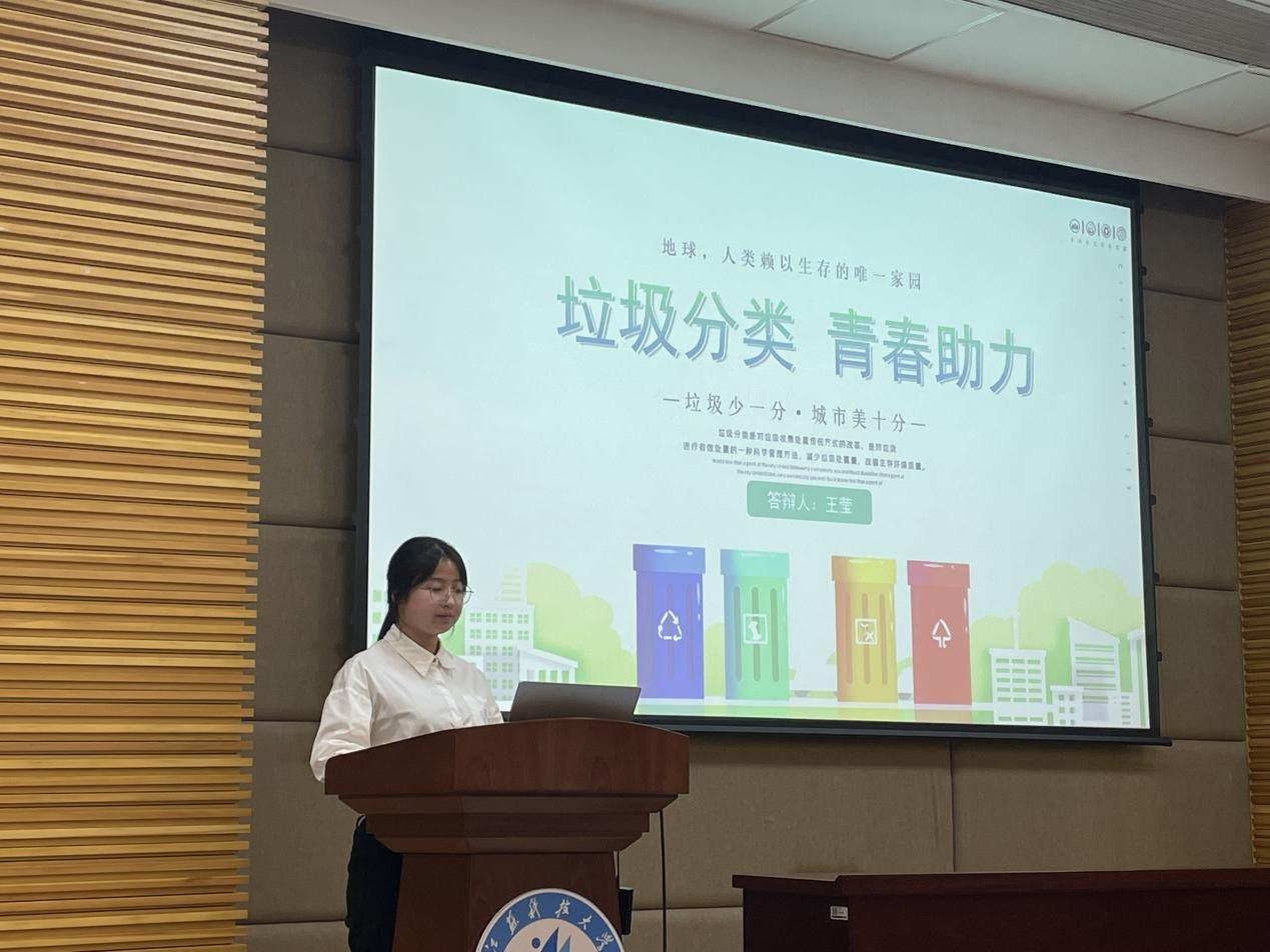 本科生王莹同学正在进行垃圾分类实践项目策划答辩