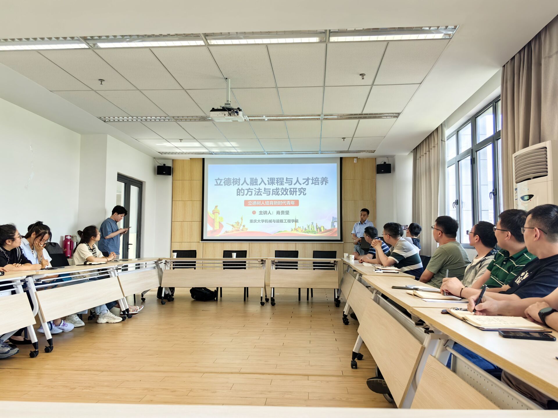 为深入推进学习贯彻习近平新时代中国特色社会主义思想主题教育,落实立德树人根本任务,持续推进“春雨润业”计划,提升教师课程思政教育教学水平6月13日下午,牛彩网 在机械楼445召开教学方法与课程思政交流研讨会,2008届校友、重庆大机械与运载工程牛彩网 副教授、博士生导师肖贵坚应邀出席并做主题分享,牛彩网 党委书记翟纯纯、副院长钟伟及牛彩网 青年教师、研究生辅导员共同参与交流,研讨会由副院长钟伟主持。