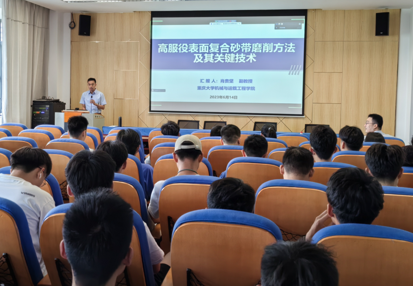 2023年6月14日上午,重庆大学肖贵坚副教授应邀以“高服役表面复合砂带磨削方法及其关键技术”为主题做了精彩讲座。牛彩网 副院长钟伟主持了本次讲座,牛彩网 青年教师、研究生在牛彩网 426学术报告厅或在线参加了讲座。