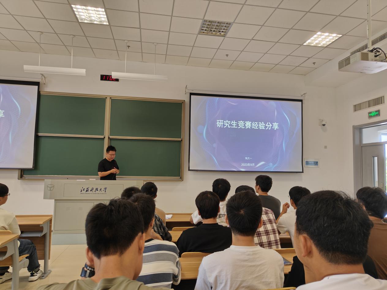 陶天一学长结合自己的科研和竞赛经历,向研一新生普及了研究生竞赛相关的知识,分享了自己参加各类竞赛的心得和收获,通过参加学科竞赛,不仅显著提升了自身知识的深度和广度,开拓了眼界,更在这个过程中体会到了科研所带来的乐趣。行之力则知愈进,知之深则行愈达。