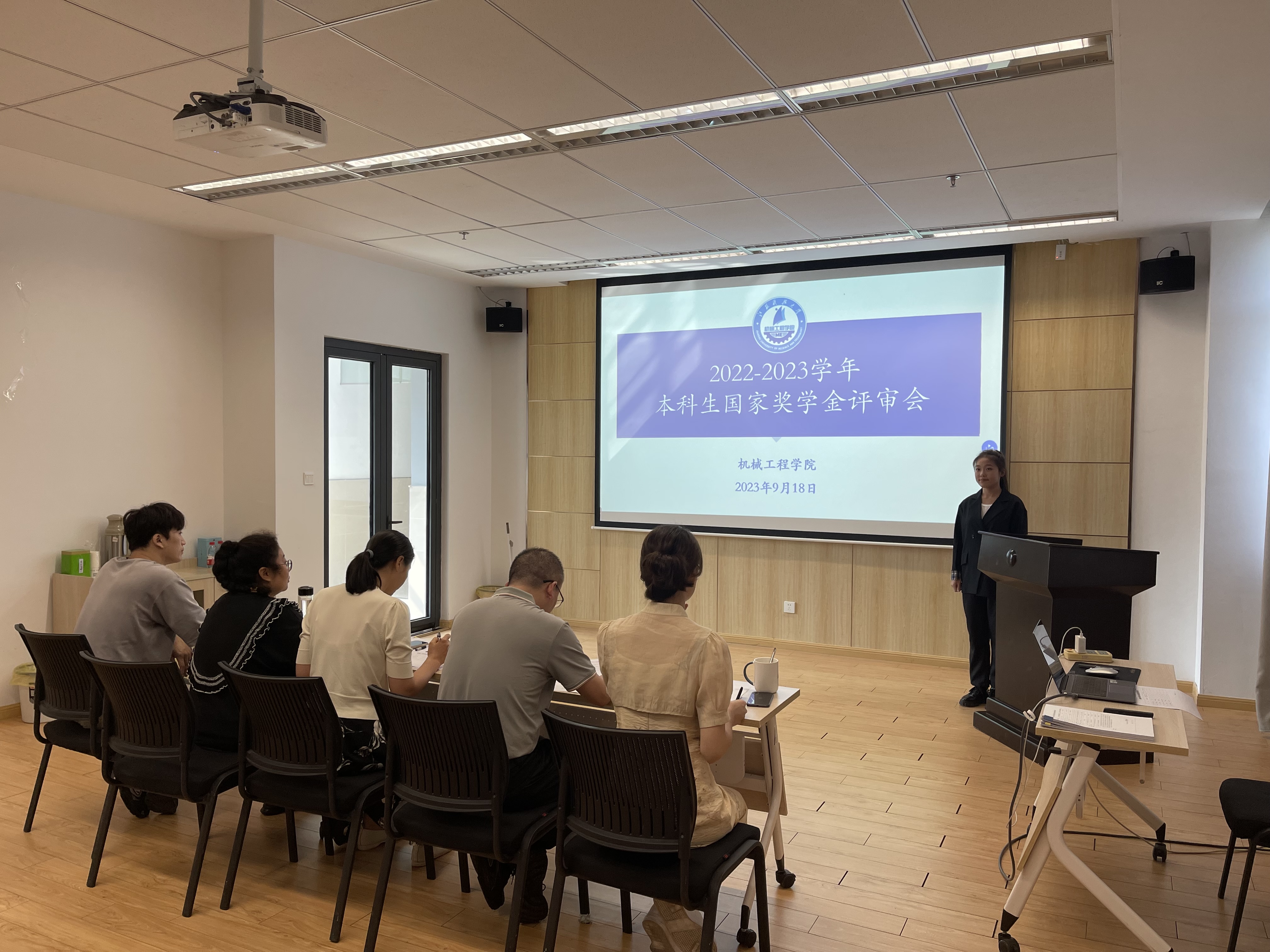 9月18日下午,牛彩网 2022-2023学年本科生国家奖学金答辩会在牛彩网 445会议室顺利举行。院党委副书记谭海波、学业导师代表管小燕、辅导员代表李南南、班主任代表吴堂凤、学生代表郑浩担任本次答辩会评委,经过学生申请、牛彩网 初审,六名国家奖学金候选人参加本次答辩会。