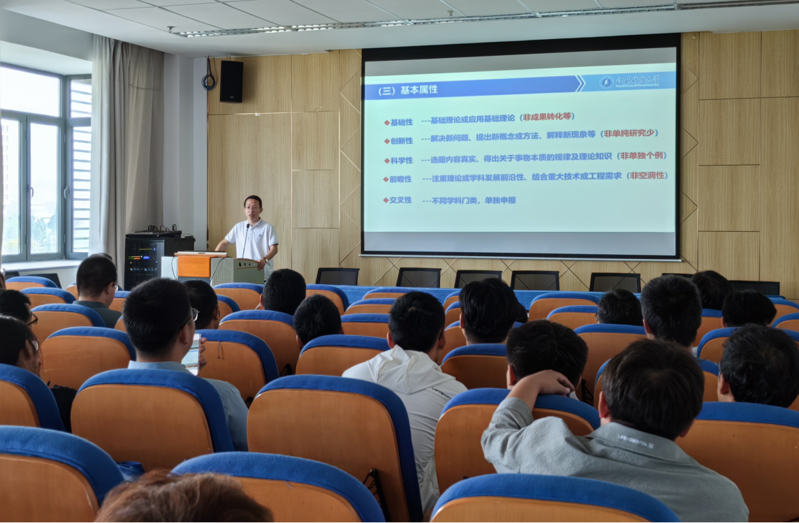 启动会上,胥国祥、冯晓明分享了个人申报国家自然科学基金的心得体会。胥国祥从评审专家的角度,讲解了基金选题、撰写规范及注意事项,详细分析了基础理论问题与工程问题的不同,特别强调选题时注意研究方向的选择。冯晓明结合个人青年基金与面上基金申报,重点介绍了基金选题、立项依据、研究内容、关键科学问题及创新性的关联与不同,强调基金撰写应“有限目标、抓住关键、重点突破、力求创新”。