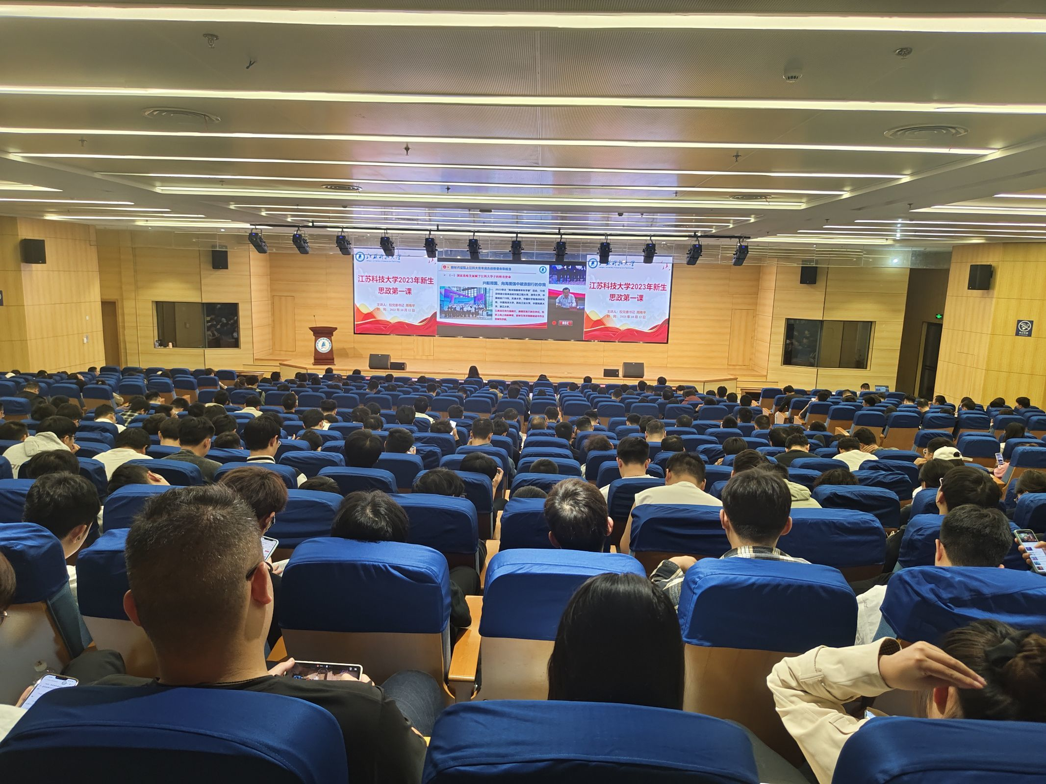 10月12日,校党委书记周南平为新生讲授了题为“胸怀‘国之大者’,勇担‘责之重者’,以青春践行服务国家战略的使命担当”的思政第一课,机械牛彩网 2023级研究生在长山校区主会场集体聆听,其他年级研究生在牛彩网 分会场和各研究生工作室听讲。