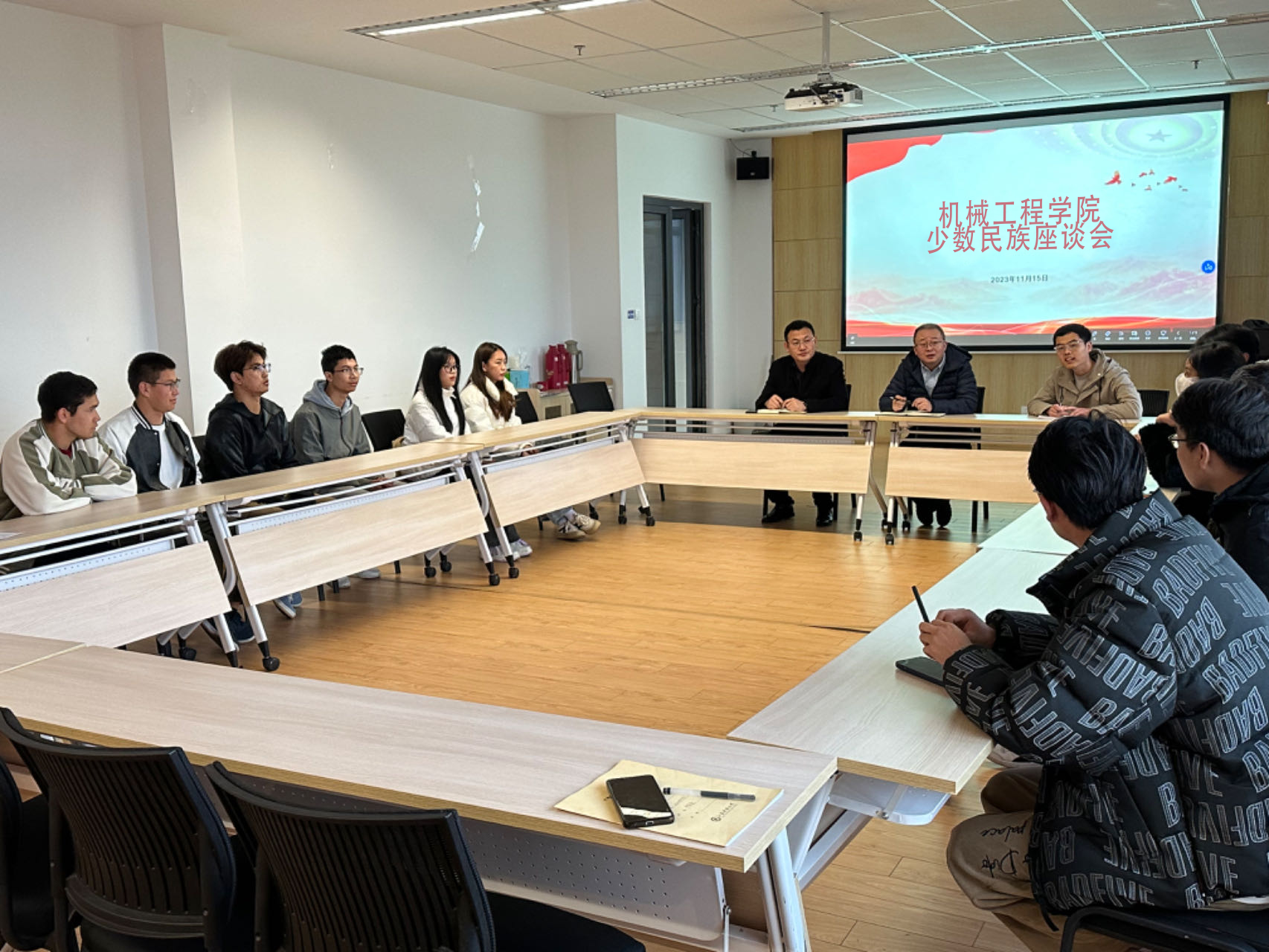 为铸牢中华民族共同体意识,加强同少数民族学生的沟通交流,促进民族团结,11月15日下午,牛彩网 在机械楼445会议室举行少数民族学生座谈会。牛彩网 党委副书记谭海波、团委书记李文达以及部分少数民族学生参加座谈会,会议由牛彩网 辅导员尹子琪老师主持。