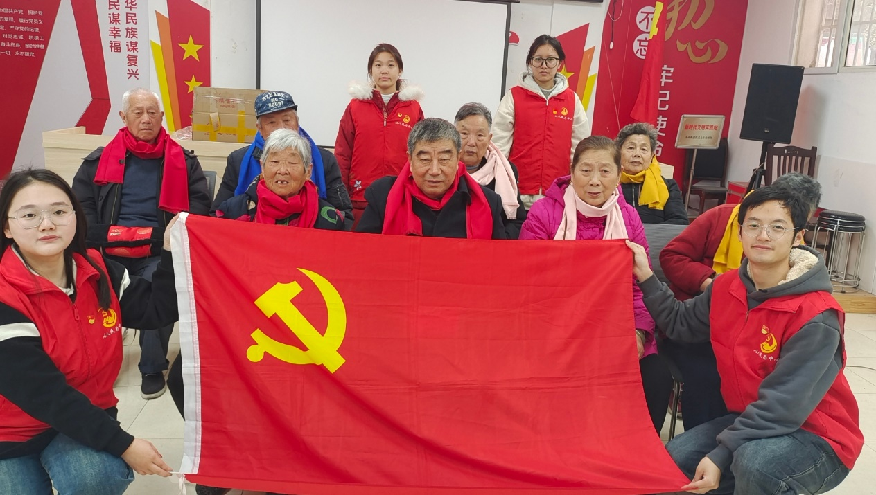 图为学生党员志愿者与老人们合影留念 王莹供图