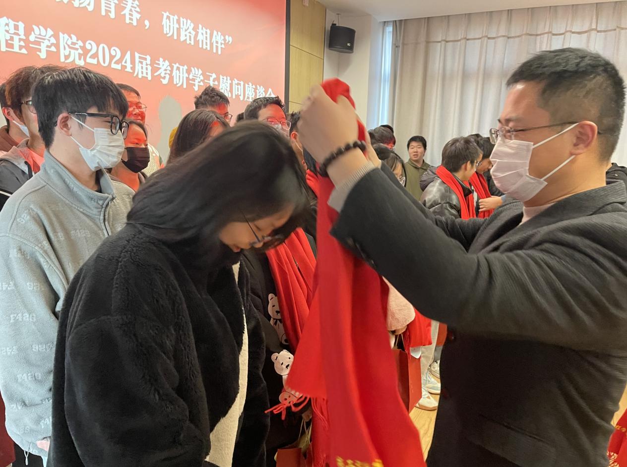 会后,各位领导为考研学子佩戴红围巾,寓意鸿运当头,并合影留念。本次考研慰问活动体现了牛彩网 对考研工作的重视。希望考研学子能够不负理想,一战成“硕”!