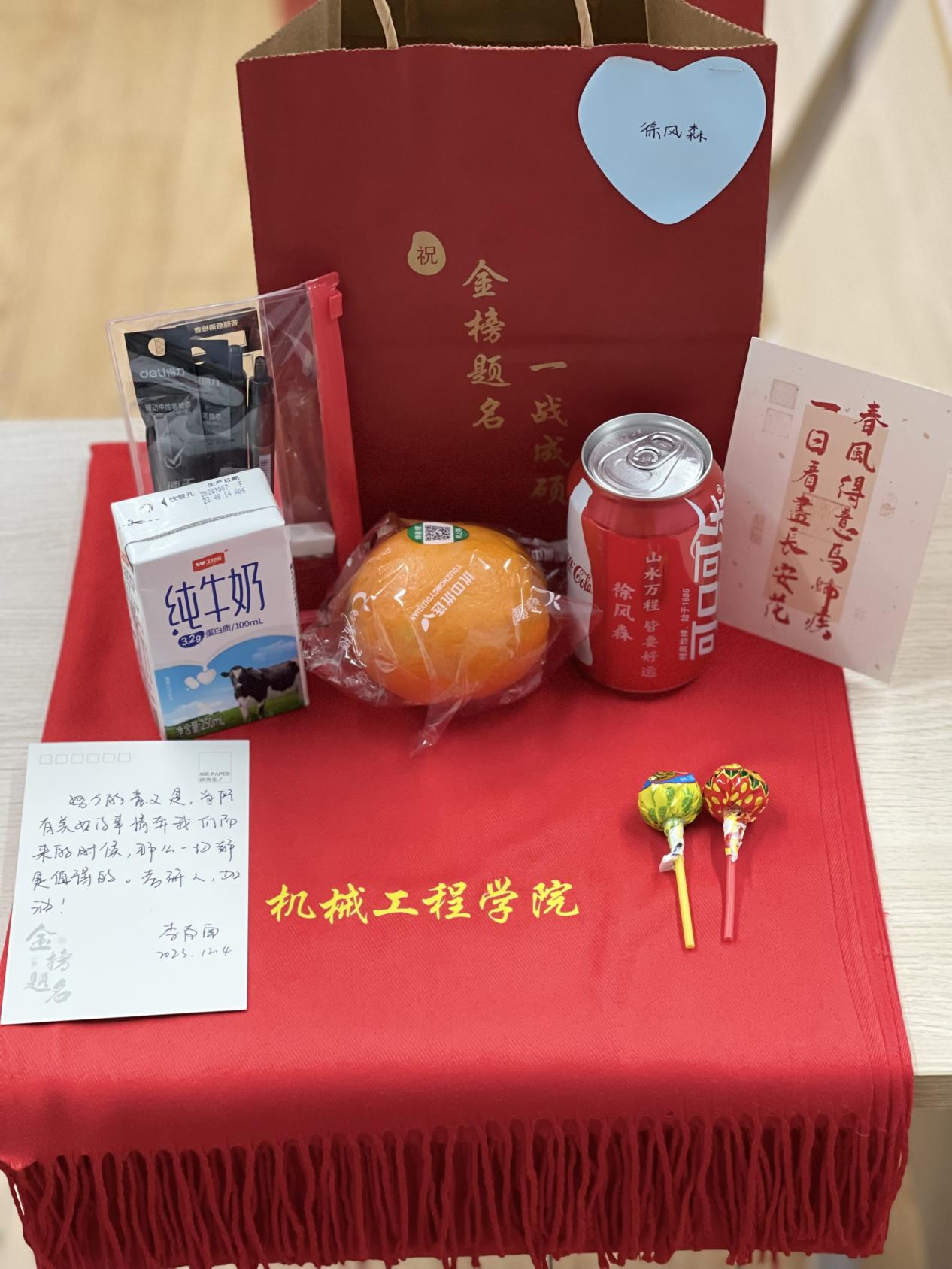 牛彩网 为考研的同学们精心准备了考研加油礼包。包括考试文具、考研署名款可乐,还有“橙”功上岸、“牛”气冲天、“棒”上有名、师生祝福贺卡等。