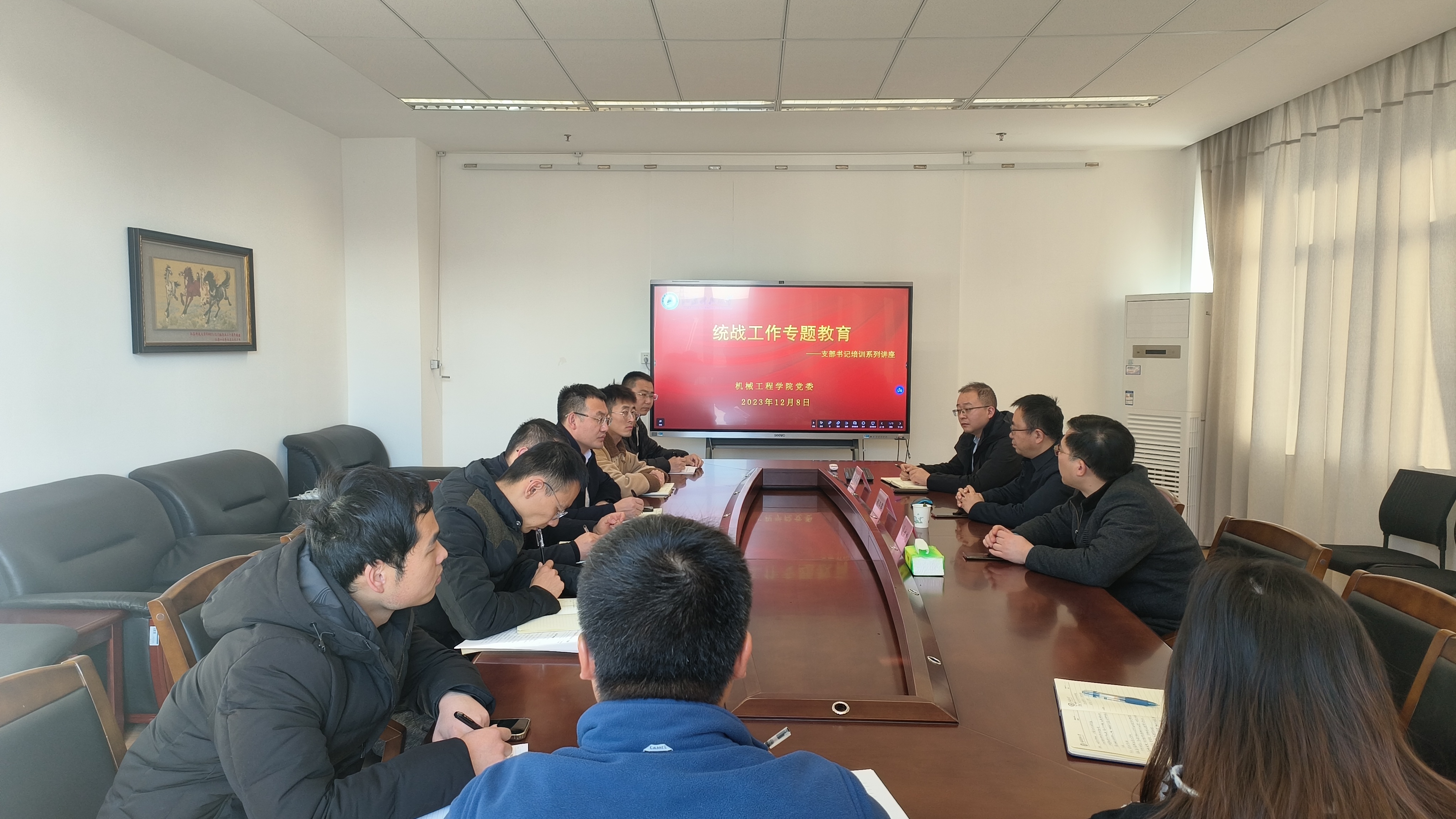 为深入学习贯彻习近平新时代中国特色社会主义思想和党的二十大精神,全面贯彻落实习近平总书记关于做好新时代党的统一战线工作的重要思想,12月8日,牛彩网 党委组织“党支部书记能力提升计划”之统战工作专题讲座,邀请校统战部副部长程荣晖主讲,党委书记翟纯纯、党委副书记谭海波、组织员薛瑜和各党支部书记参加讲座,讲座由翟纯纯主持。