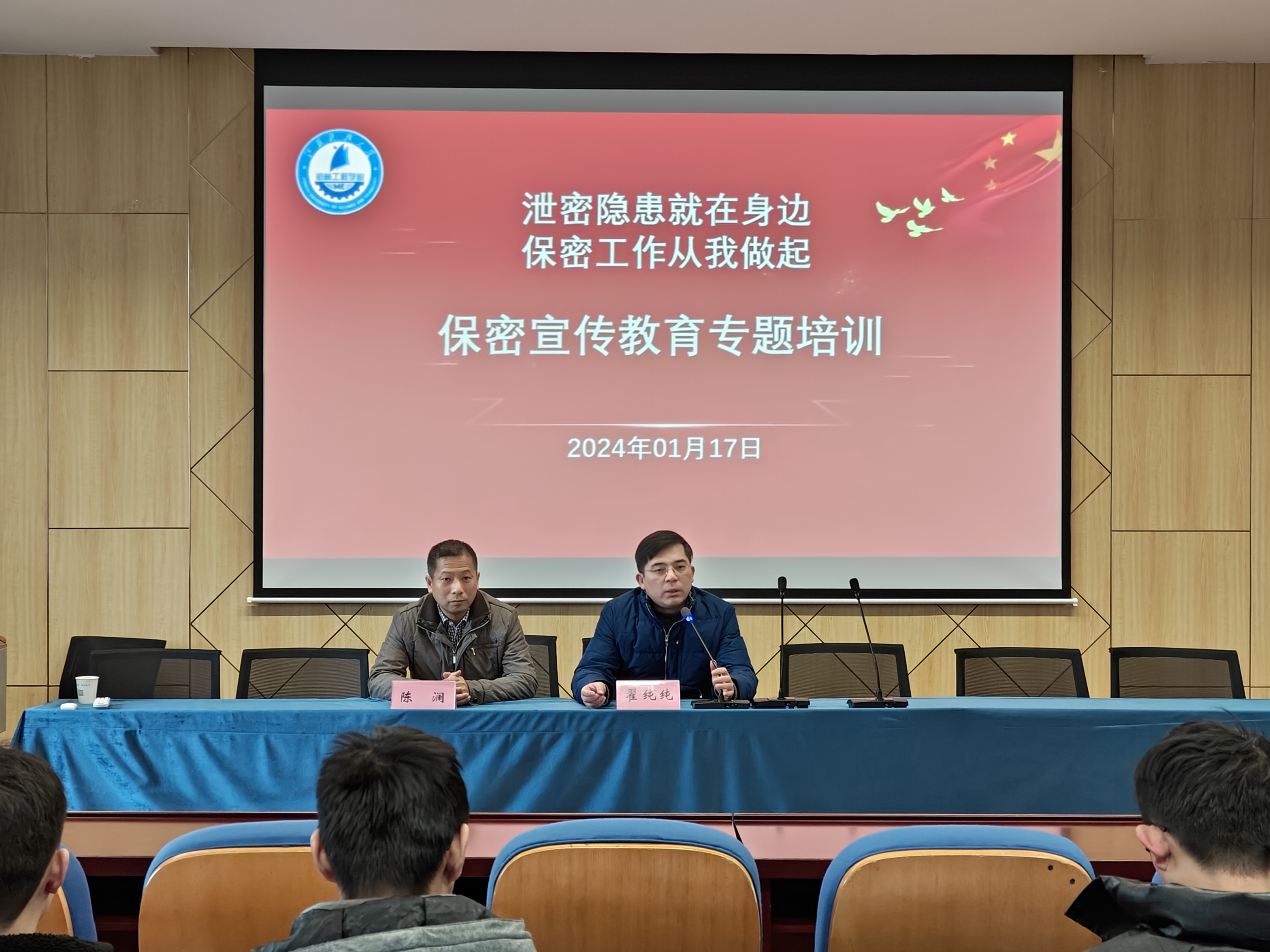 为深入学习宣传贯彻党的二十大精神,进一步加强安全保密宣传和警示教育工作,引导广大师生增强保守国家秘密的责任感和自觉性,根据上级和学校保密办的安排,牛彩网 于2024年1月17日,在牛彩网 楼426组织开展保密宣传教育专题培训会。校保密办主任陈澜、机械牛彩网 党委书记翟纯纯、机械牛彩网 副院长李磊以及各涉密课题组相关保密工作人员参加了本次培训活动。