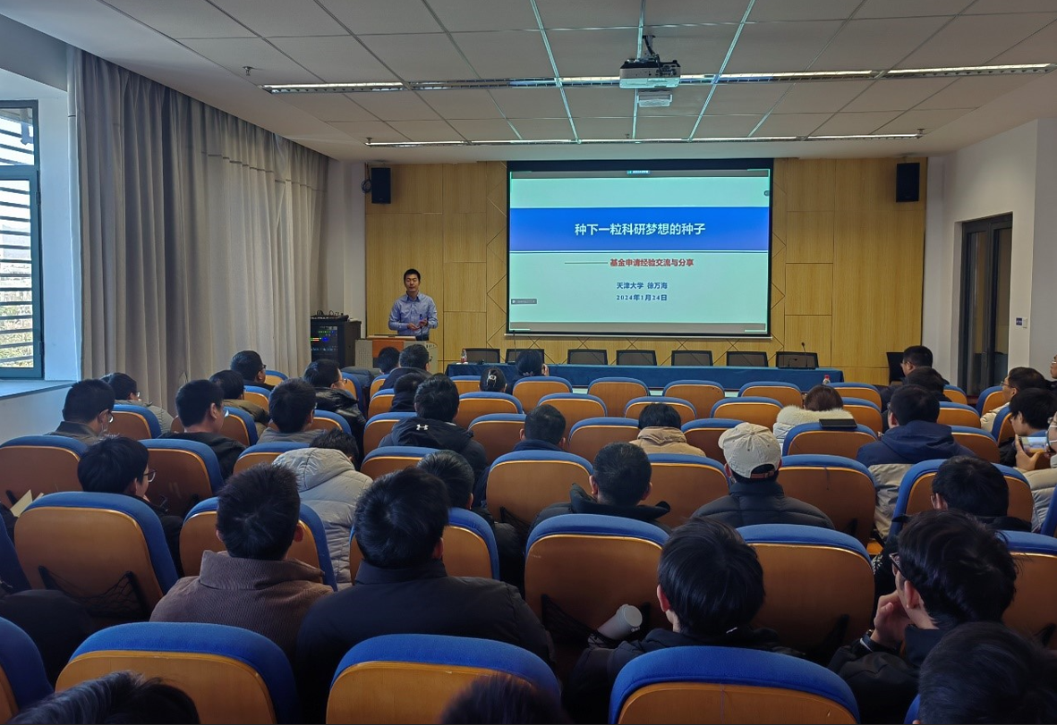 2024年1月24日,天津大学徐万海教授应邀以“种下一颗科研梦想的种子——国家自然基金申请经验分享”为主题做了精彩的讲座。牛彩网 院长张建主持本次讲座,牛彩网 青年教师、部分校内、外同行参加讲座。