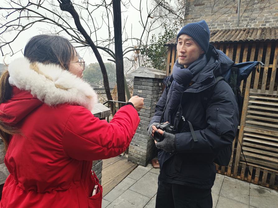 牛慧慧同学(左一)进行采访 拍摄:刘士鑫