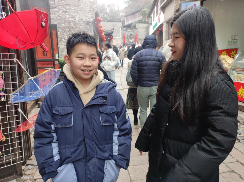 首先实践团在古街入口遇到了前来游玩的一家人,刘士鑫同学对其展开了采访。在采访中了解到一家是从江西来游玩的游客,他们表示“近几年生活越来越好,出行越来越方便,文旅发展了很多,经济物质更加富足,有能力也愿意出远门游玩了。”