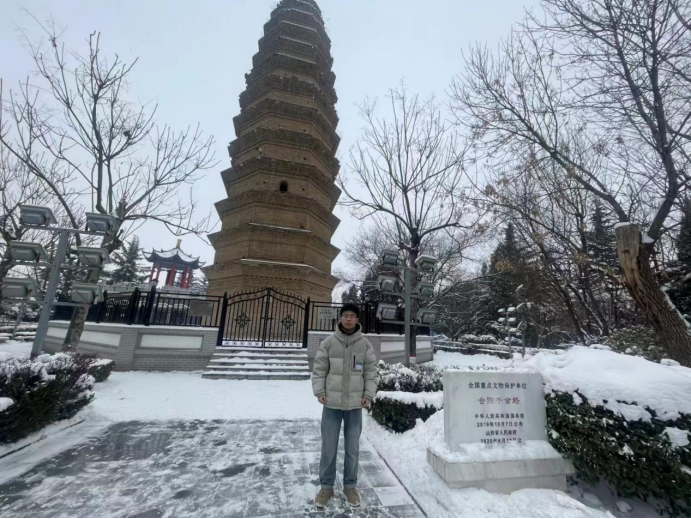 实践团人员赵佳浩回到他的家乡-陕西省渭南市合阳县,他选定的主题是了“千金塔”和“木偶提线戏”。经他介绍:“千金塔”,是合阳现存四座大塔中有确切建筑纪年者,在2019年10月7号被国务院列为第八批全国重点文物保护单位,而合阳提线木偶是陕西省特有的传统木偶艺术,历史十分悠久。合阳人称其为“线猴”,“线胡”。