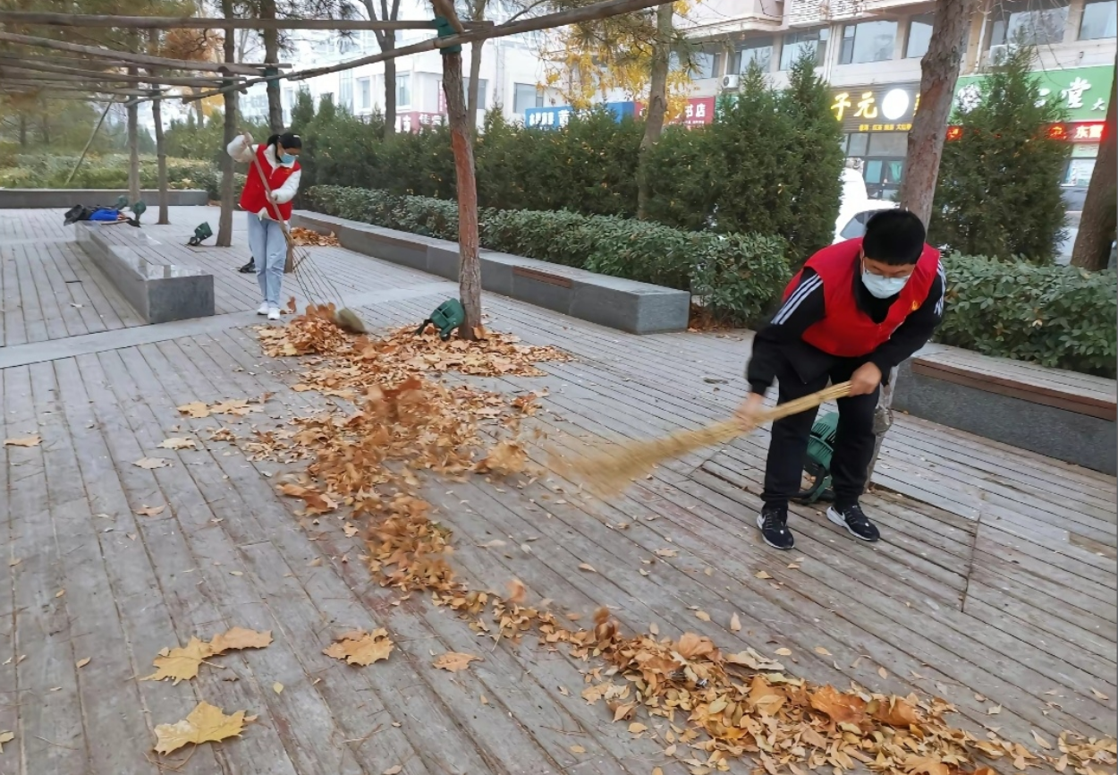 春节到来乐淘淘,祖国山河竞妖娆。辞旧迎新大扫除,干干净净迎新年。第二项活动参与形式为上传在街道,小区打扫卫生或帮助环卫工人打扫卫生的照片。同学们走上街道,拿起扫把,一招一式,一扫一过,就是简简单单迈出有意义假期的第一步。此项活动是大学生接触社会,走进基层最简单直接的方式,也是传递温暖的一小步。