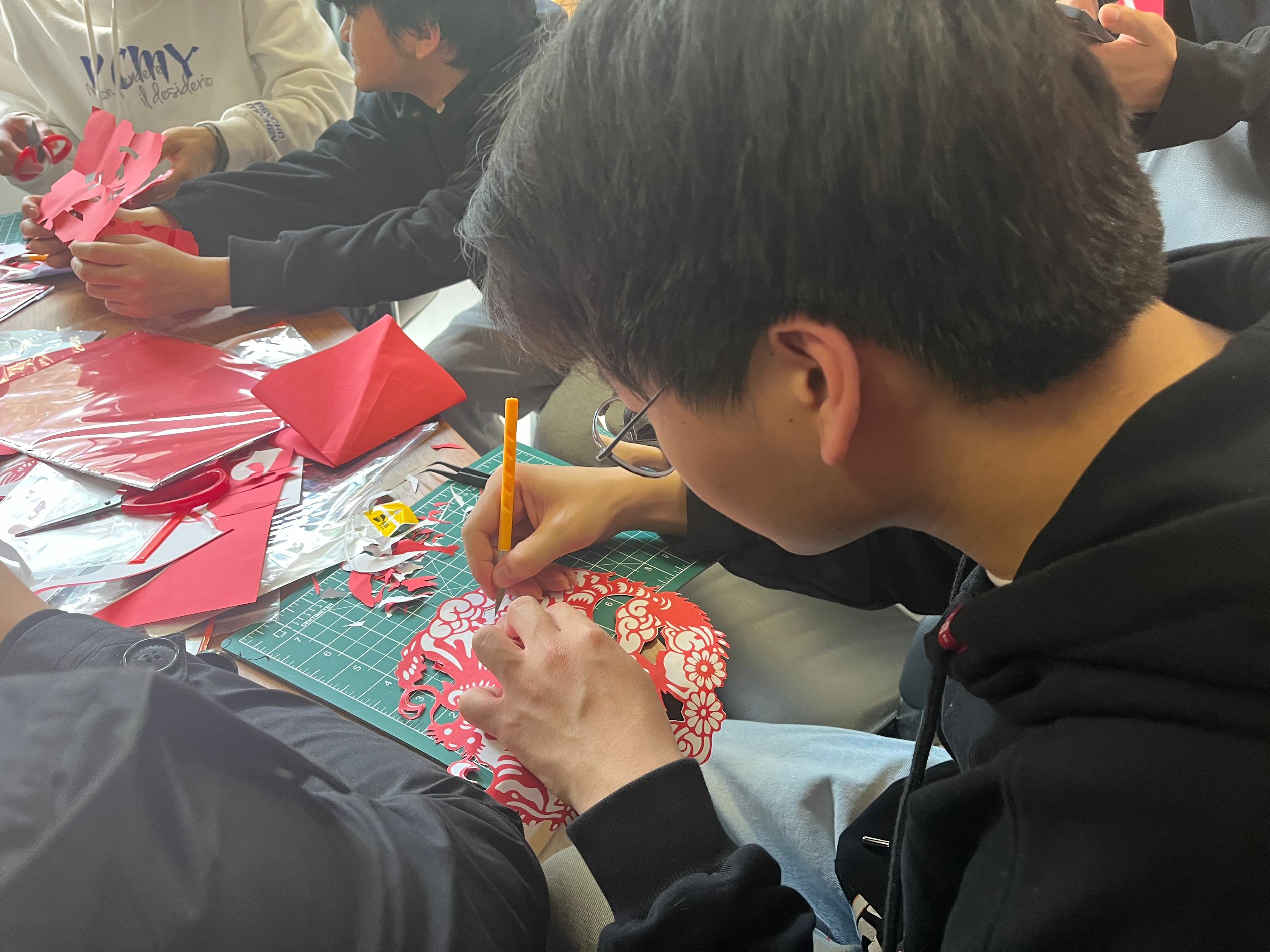 首先,心理委员张子冉同学首先向大家介绍了剪纸的历史与意义,向同学们展示了各种各样的剪纸,让同学们能够更好地了解剪纸的艺术,能够亲身感受这只存在大多数人记忆里的非遗文化。随后,同学们跟随着指导,在这种惬意的氛围之中慢慢的制作自己的剪纸。每个人都在精心制作自己挑选的剪纸,感受着中华文化的博大精深。在剪纸中,偶尔会发生意外,但是同学们都能一起解决问题。有的同学有一些自己难以裁剪的位置,就会有旁边的同学帮助他一起制作;有的同学对于一些工具的使用存在错误,就会有同学前来分享自己的心得。每个人都交流彼此的作品以及制作的经历,在这种轻松快乐的氛围之中,活动不知不觉走向了尾声。