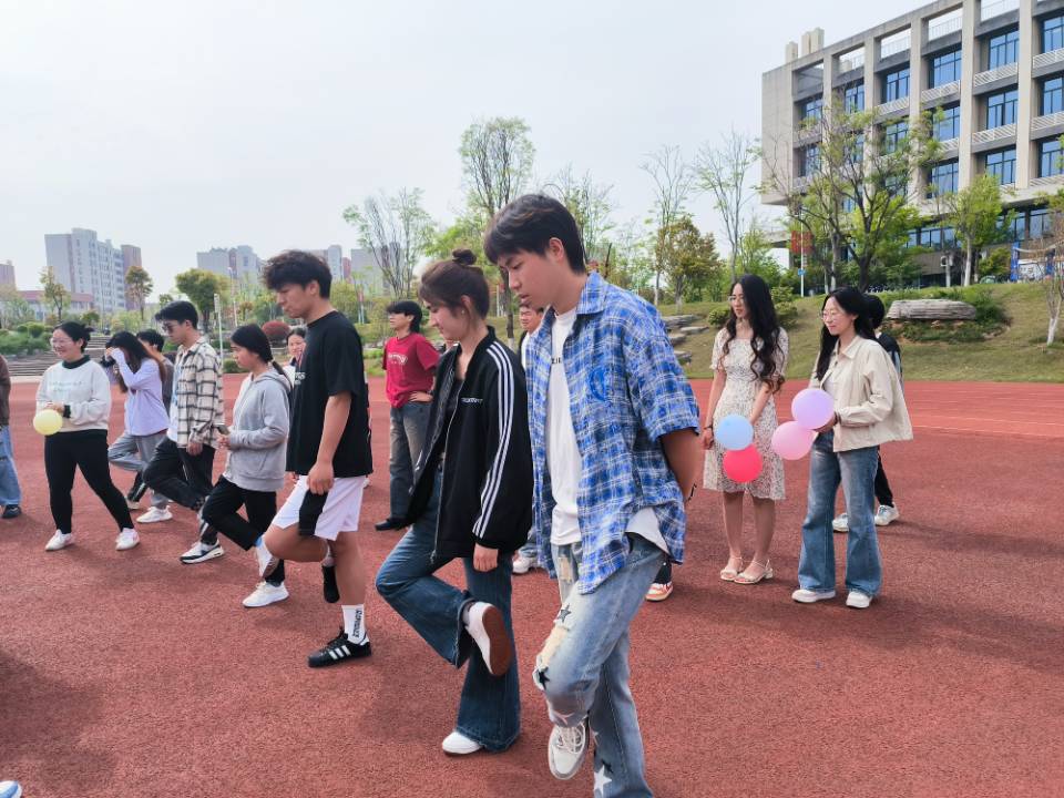 “是盲不是瞎”游戏两人成对,转20圈后蒙眼进行气球标签搭配。不仅考验同学们的平衡能力,更考验同学们的默契度。在一定程度上,本次活动也打破了人与人之间的交流壁垒,促进人与人之间的交流,缓解同学们的学习与生活压力。