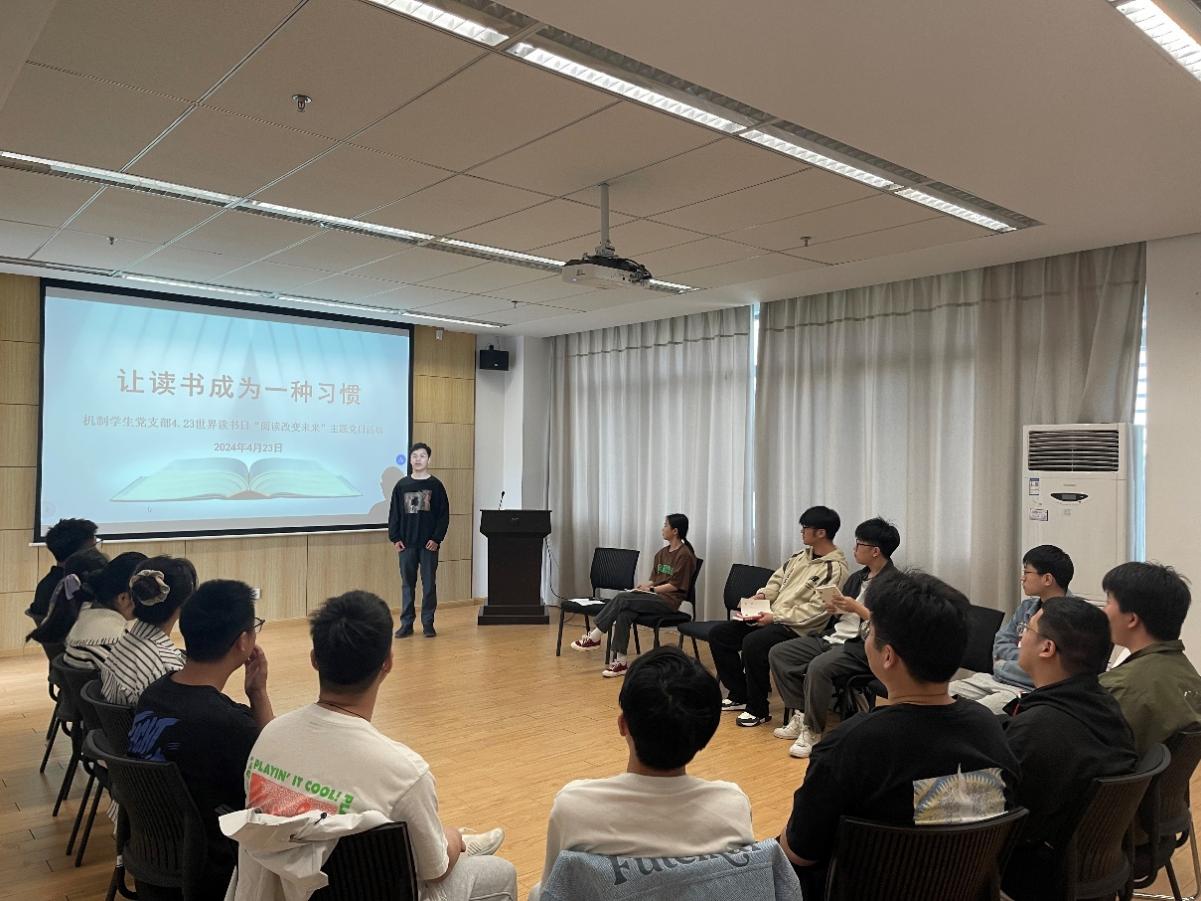 为营造书香氛围,形成良好的读书风尚,4月23日下午,机制学生党支部在牛彩网 大会议室开展“让读书成为一种习惯”4.23世界读书日“阅读改变未来”主题党日活动。支部全体党员参与本次活动,活动由2021级学生党员张文杰主持。