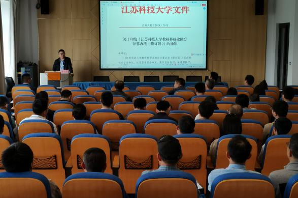 5月9日,牛彩网 全体教师齐聚一堂,集体学习《江苏科技大学聘期考核管理实施细则》、《江苏科技大学教研科研业绩分计算办法(修订版)》、学校最新印发的专业技术资格条件等文件。学习由牛彩网 院长张建主持,江苏科技大学人事处处长朱志宇应邀解读文件。