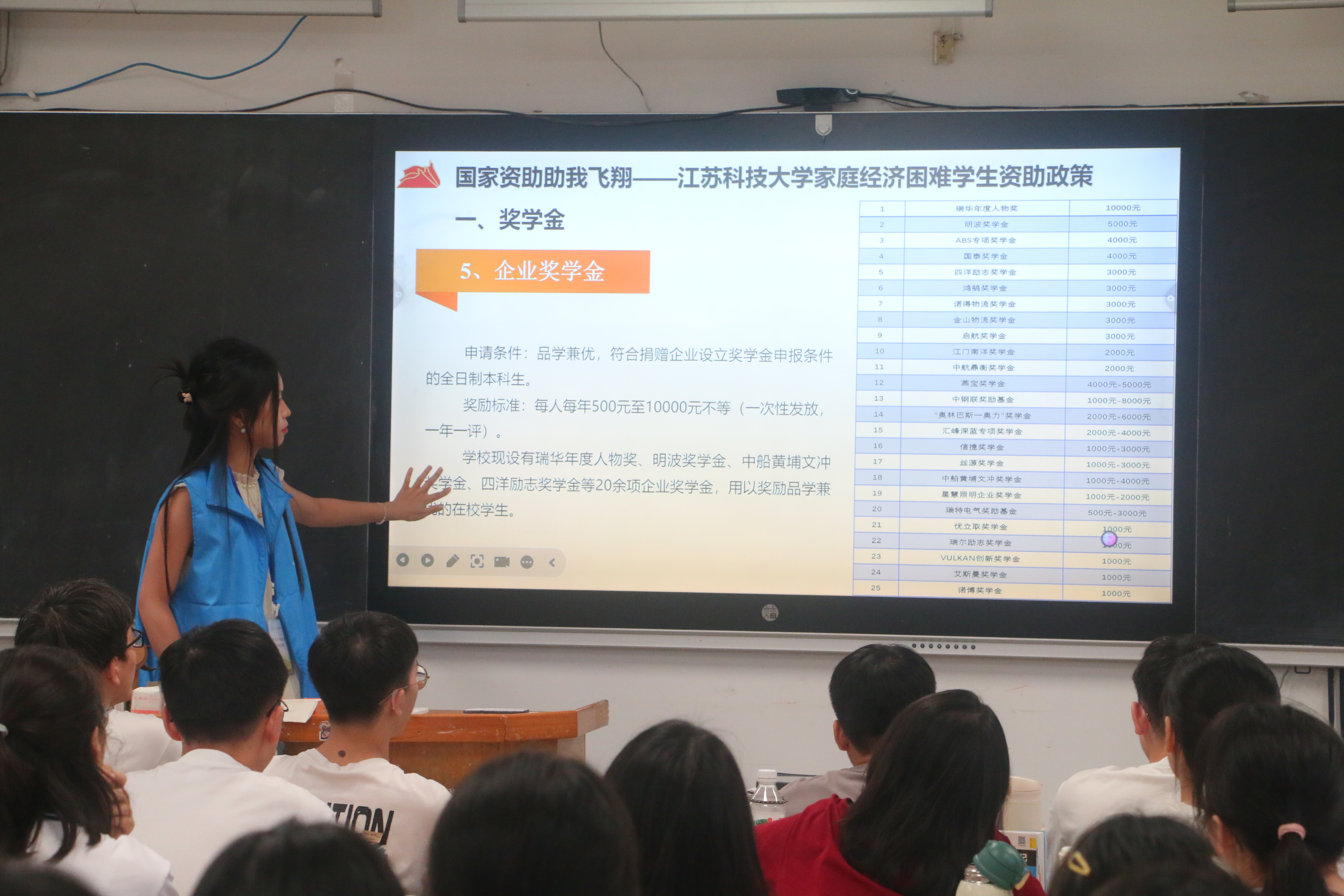 宣讲中,杨小霜向高三的同学们介绍了国家资助政策,以及江苏科技大学的“奖、助、勤、贷、减、免、补”等资助体系,申请流程、评选标准及所需材料,同时结合自己的亲身经历,与大家分享了自己如何在求学路上克服经济困难、保持积极心态、提升自我能力的宝贵经验,她希望通过自己的故事,让学弟学妹们知道,无论出身如何,都不应成为追求梦想的阻碍。宣讲中也有不少同学们积极提问,我也耐心解答,现场气氛热烈而温馨。