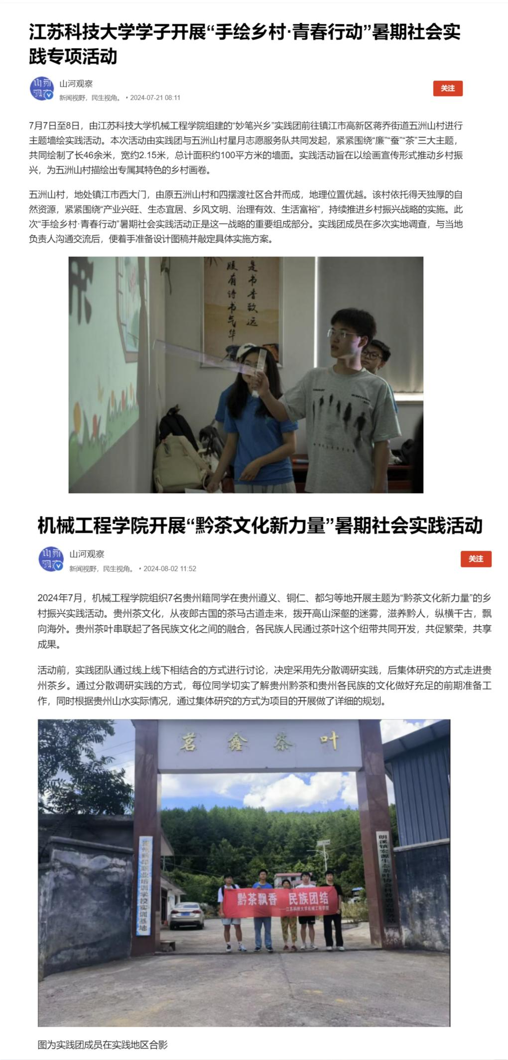 本次暑假,机械学子积极响应时代号召,将理论与实践相结合,以实际行动走入社会、深入基层,进行了富有成效的暑期社会实践活动。他们以社会作为成长成才的第二课堂,通过躬身实践汲取智慧,砥砺前行中凝聚力量。他们走进乡村、企业、社区,亲身参与社会实践,接触社会,了解社会,这极大地加强了他们与社会的联系。他们通过亲身经历,深化了对社会的认识,更加坚定了为人民服务的决心。