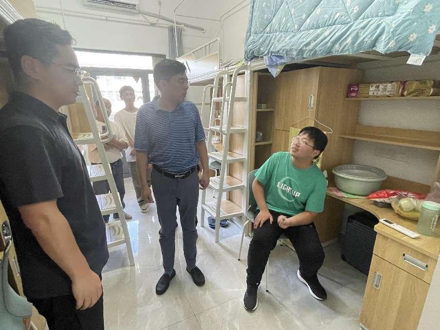 上午,领导们逐一走进新生宿舍。在宿舍内,翟纯纯书记和谭海波副书记细心询问了新生们的入学报到手续办理情况,从报到流程的便捷性到宿舍设施的完善度,事无巨细,一一了解并听取反馈。翟书记特别强调了牛彩网 对于新生适应新环境的重视,他强调:“牛彩网 深知初来乍到的你们或许会有诸多不适应,但请放心,牛彩网 就是你们的坚强后盾。无论是学习上的困惑还是生活中的难题,我们都将全力以赴,为你们提供最坚实的支持。”