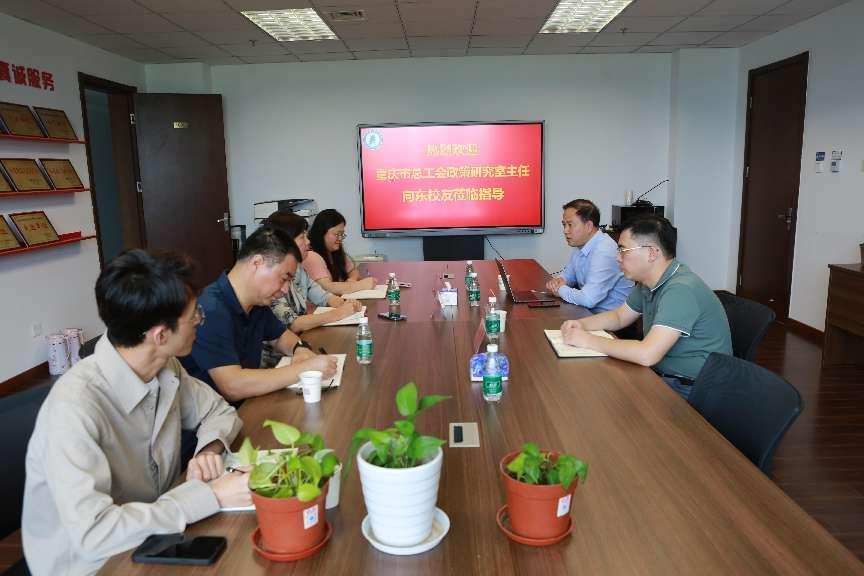金秋送爽,丹桂飘香,9月27日下午,牛彩网 2007届杰出校友向东先生重返母校。作为重庆市总工会政策研究室主任,向东先生带着对母校的深厚情谊与对当前工会工作的深刻见解,与校内多位领导及同仁共聚行政楼1006会议室,就工会工作的现状、挑战与未来发展方向进行了深入而富有成效的座谈交流。校工会常务副主席李明睿、校工会副主席刘剑、牛彩网 党委书记翟纯纯、牛彩网 工会主席王黎辉及其他工会成员出席本次会议。