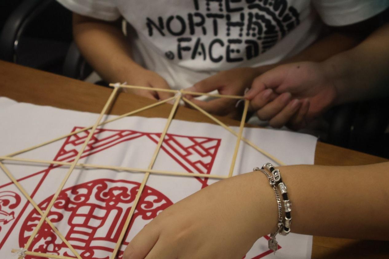了解过板鹞风筝的历史背景之后,同学们开始兴致勃勃的讨论起风筝的制作过程。大家分组合作,互相帮助,从选材到制作,每一步都亲力亲为。尽管过程中遇到了不少挑战,如骨架不够稳固、骨架连接困难等,但学生们并没有气馁,而是相互鼓励,共同解决问题。经过几个小时的努力,一个个色彩斑斓、多姿多彩的板鹞风筝终于在学生们的手中诞生了。