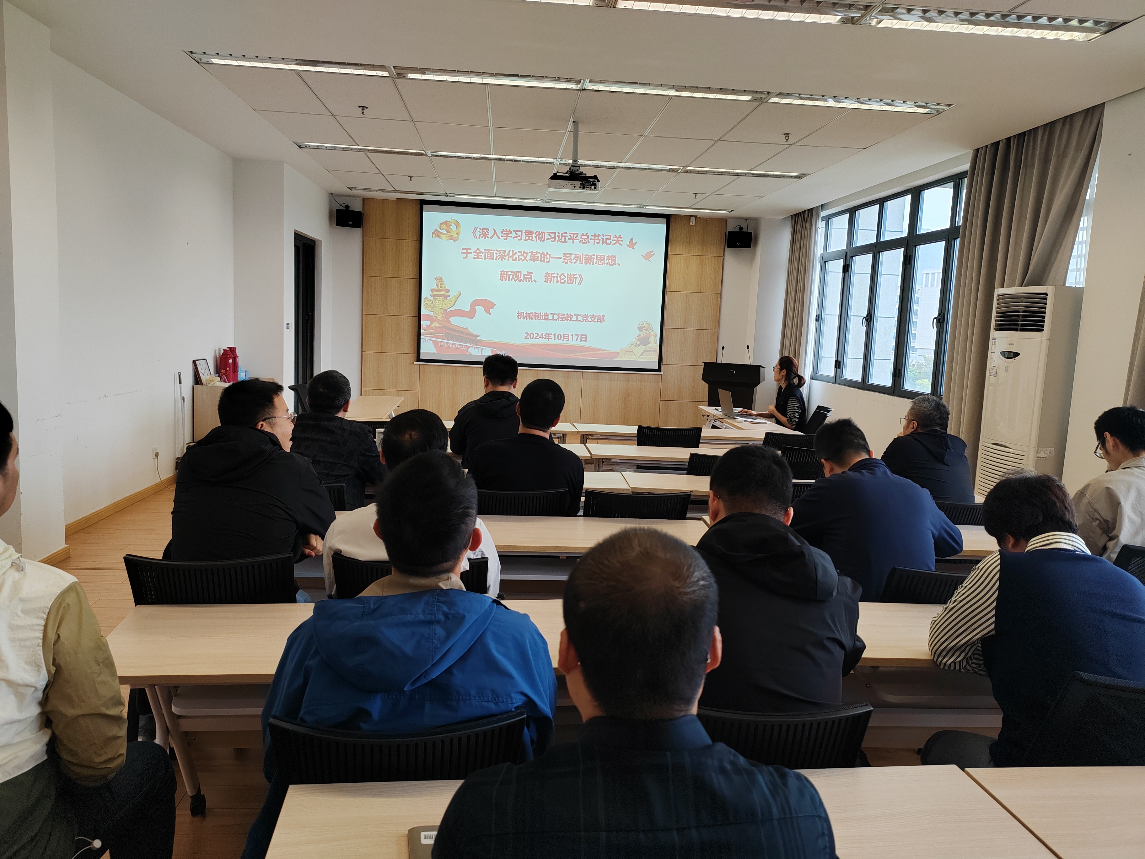 全体师生党员集中学习《中共中央关于进一步全面深化改革推进中国式现代化的决定》(第二至第七部分)《深入学习贯彻习近平总书记关于全面深化改革的一系列新思想、新观点、新论断》《中国共产党章程》(第二章党的组织制度)及《中国共产党普通高等学校基层组织工作条例》,思考如何坚持好、运用好贯穿其中的立场观点方法,不断增强改革创新的能动性,加强基层党支部建设,以钉钉子精神抓好各项工作落实。