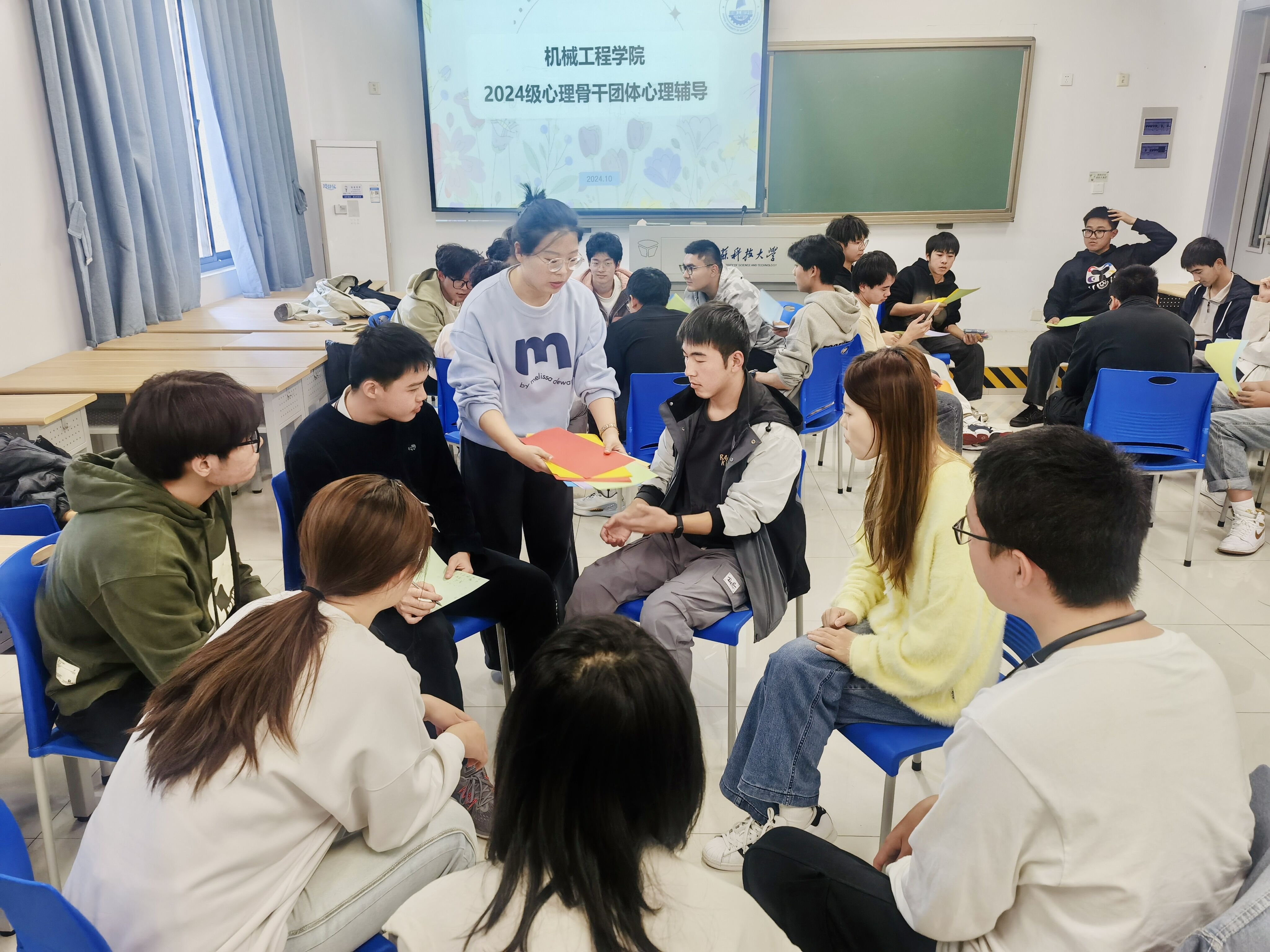 为进一步加强学生心理健康教育指导工作,提升心理骨干队伍的能力水平,同时促进新生相互之间的熟悉,加强学生之间的交流,提升新生对校园环境的适应能力,牛彩网 于10月29日在经世楼115开展了大学新生环境适应性团体心理辅导,活动由牛彩网 心理辅导员朱志贤主持,全体2024级班长、2024级心理委员和部分2023级同学参加。