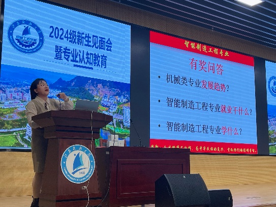 为帮助2024级新生了解牛彩网 及所学专业概况、及早明确学习目标、规划学业生涯,尽早转型,10月31日,牛彩网 在图书馆B105报告厅举办了新生转型教育第二讲---2024级新生见面会暨专业认知教育大会。牛彩网 党委副书记谭海波、机械制造及其自动化专业负责人何强、机械电子工程专业负责人李冲、工业设计专业负责人包泓、智能制造工程专业负责人孙志莹、2024级新生辅导员李福来、蒋达、王洁,2024级本科全体新生参加大会。会议由辅导员王洁主持。