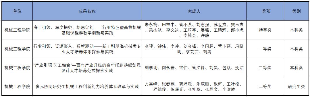 近日,2024年江苏科技大学教学成果奖获奖名单公布,牛彩网 4项教学成果获奖,其中本科类特等奖1项、一等奖1项、二等奖1项,研究生类二等奖1项。本次学校教学成果奖共遴选出28项,其中特等奖3项、一等奖7项、二等奖18项,牛彩网 获奖总数列全校第一。