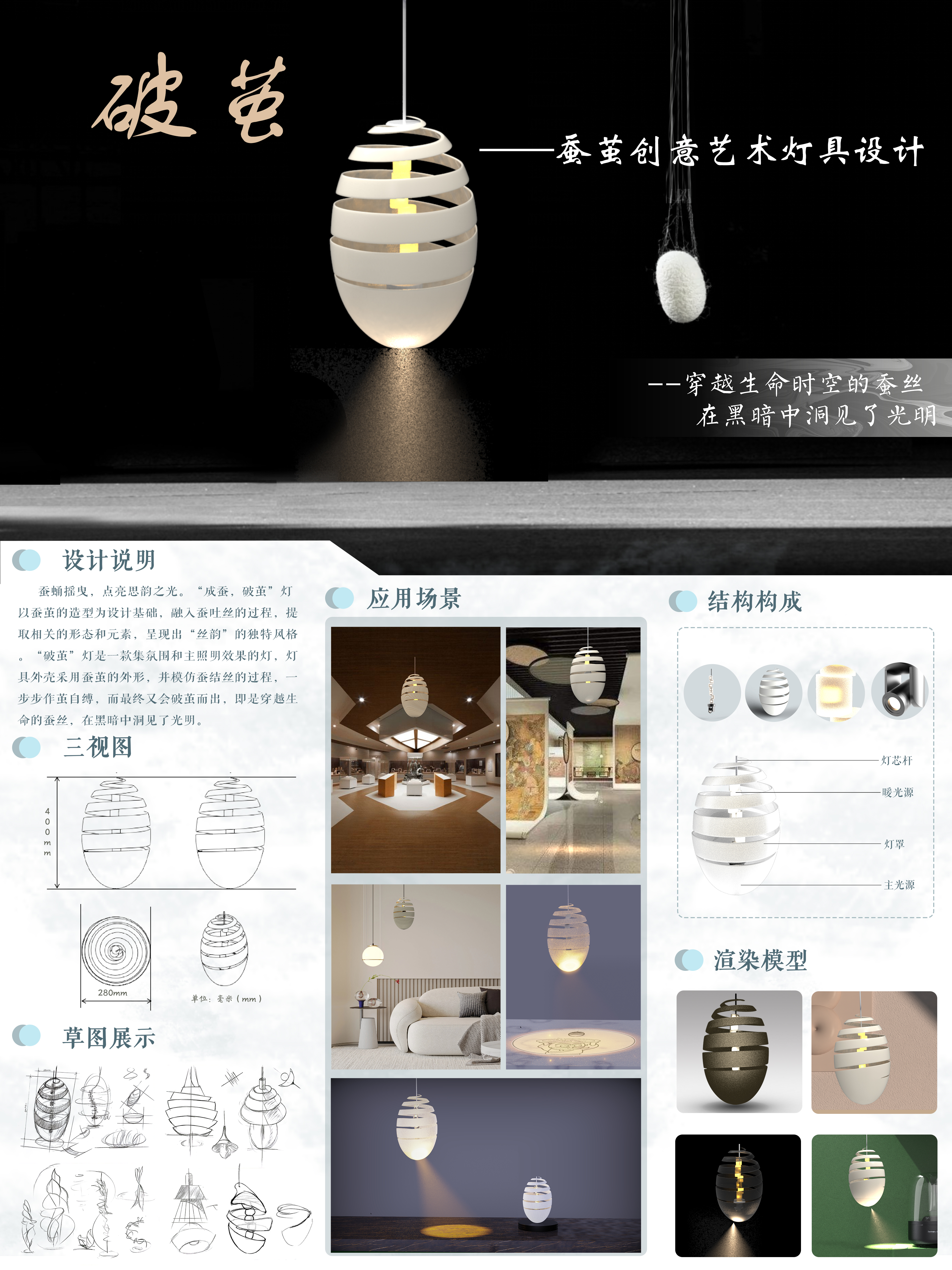 6 | 破茧——蚕茧创意灯具 设计 | 赵芙瑛 耿 林 | 江 雪 | 产品设计 | 二等奖 |