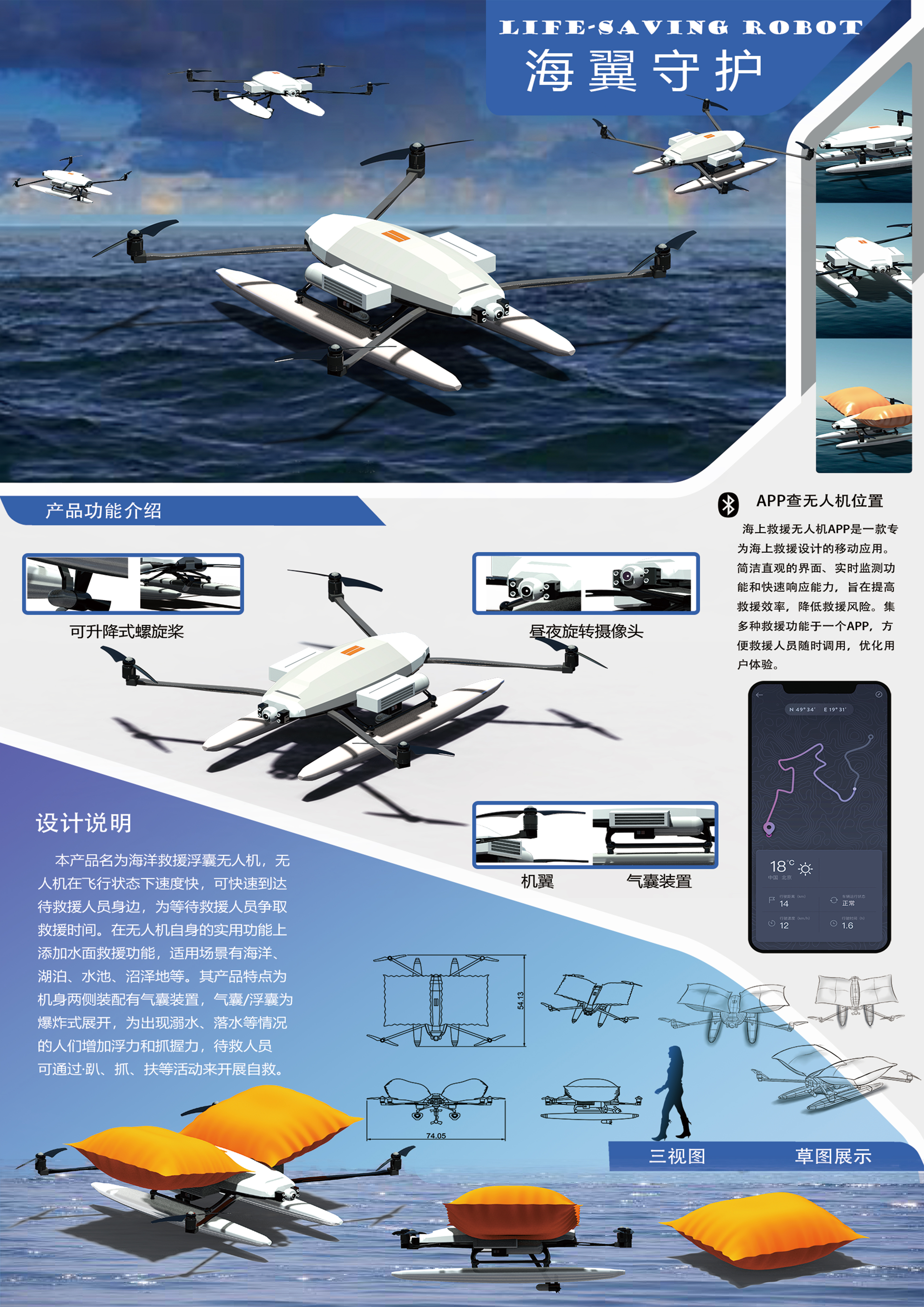 5 | 海上救援浮囊无人机设计 | 李雯雯 欧黎婉 肖玉屏 徐风森 | 马 飞 | 产品设计 | 二等奖 |