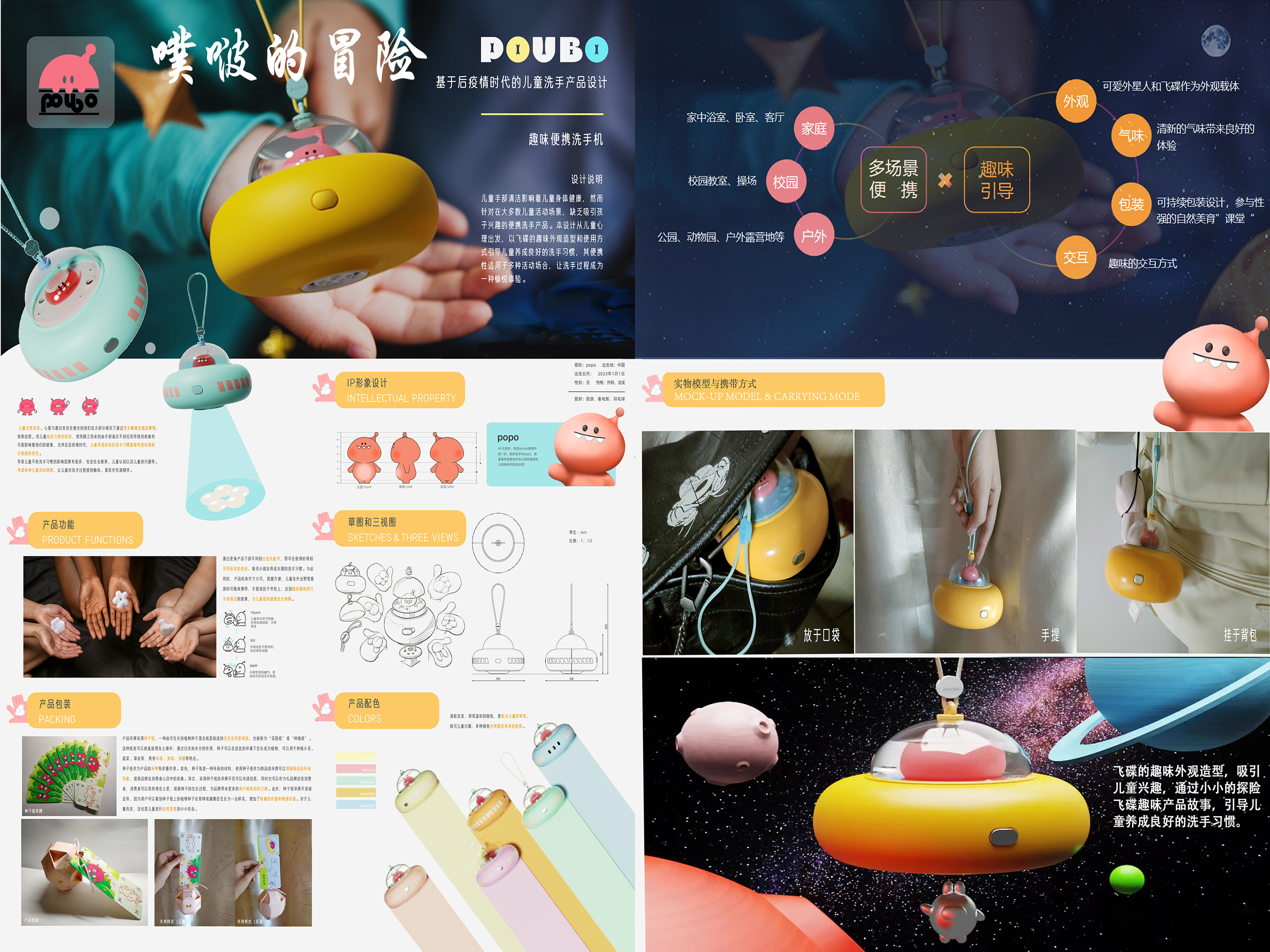 1 | 噗啵的冒险——后疫情时代儿童趣味洗手产品设计 | 江 雪 宗文秀 | 产品设计 | 一等奖 | |