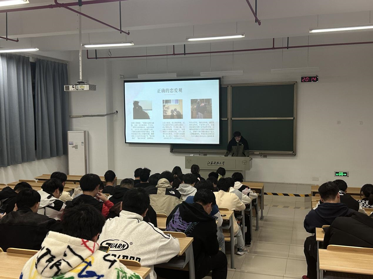 婚恋观是人生观的重要组成部分,影响着一个人一生的发展与幸福。对于正值青春年华的大学生而言,树立正确的恋爱观对于情感生活和心理健康至关重要。为了引领同学们在恋爱的海洋里稳健航行,牛彩网 2023级智能制造工程1班、2班于11月11日晚在笃学楼308联合举办了以“大学生正确的恋爱观”为主题的心理健康班会活动,旨在引导同学们树立科学的心理健康理念,共同绘制阳光和谐、充满正能量的校园画卷。