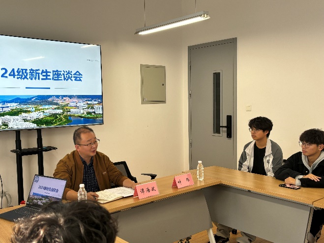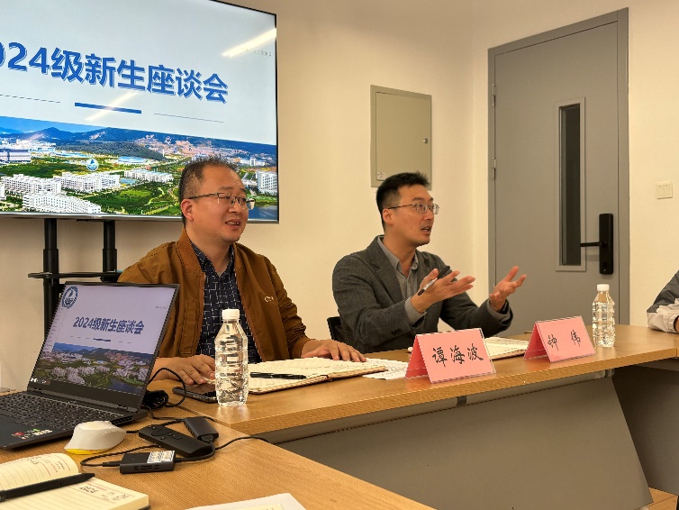 最后,谭海波老师感谢新生们的积极参与和宝贵意见。也对新生提出了3点要求和希望:一是要严格要求自己、树立奋斗目标;二是要广交好友、拓宽视野;三是要享受大学生活、丰富大学时光。