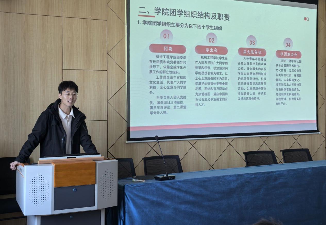 为明确牛彩网 团学组织和班团委员等学生干部在服务师生、组织管理和校园活动中的职责与作用,提升其服务意识与工作能力,进而推动班级与牛彩网 各项工作的有序开展。牛彩网 团委于11月28日在机械楼426举行2024年“青马工程”开班仪式暨第二次培训会。牛彩网 辅导员李福来老师担任主讲人,牛彩网 各团学组织、班团委员等学生干部参加本次培训。
