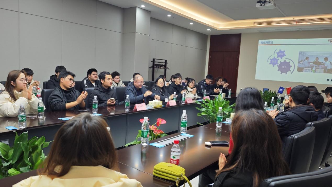 抵达南高齿后,师生们首先参观了“中国传动馆”。这里全面展示了南高齿的发展历程和创新成果。参观结束后,一行人移步至会议室,与企业方代表进行了深入的座谈交流。南高齿人力资源部张玲首先简要介绍了公司的基本情况、发展历程、技术创新和人才培养,同时表示公司非常重视与高校的合作,希望通过双方的共同努力,为行业培养更多高素质的专业人才。随后,我校优秀校友叶飞、余伟生分别介绍了自己在南高齿入职以来的职业成长和感悟。