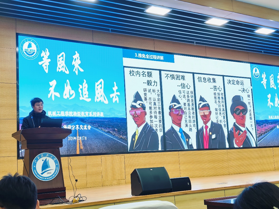 来自21级机械电子工程专业的薛伟重点从自己的竞赛经历、时间规划做了简要分享,他告诫学弟学妹们若有保研想法应在大一阶段打好基础、大二积极备战竞赛、大三争取有所产出。