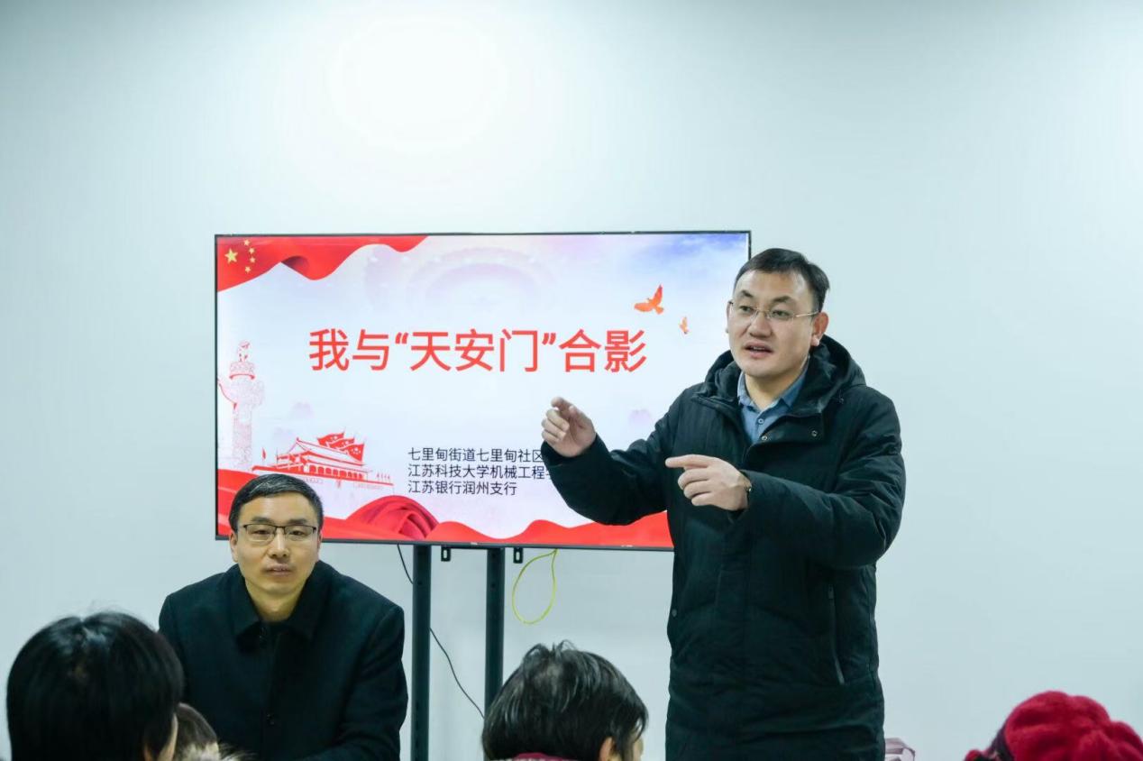 为传承历史记忆,弘扬革命精神,江苏科技大学牛彩网 团委和工业设计学生党支部于1月10日上午走进镇江市润州区七里甸社区,开展了一场以“天安门前圆耆情,镜头传心映长影”为主题的实践活动。活动旨在通过帮助老人们与天安门幕布合影,帮助他们实现天安门合影的梦想,唤起他们内心深沉的爱国情怀,并以采访为桥梁,聆听社区老人讲述峥嵘岁月,感受国家发展的磅礴力量。