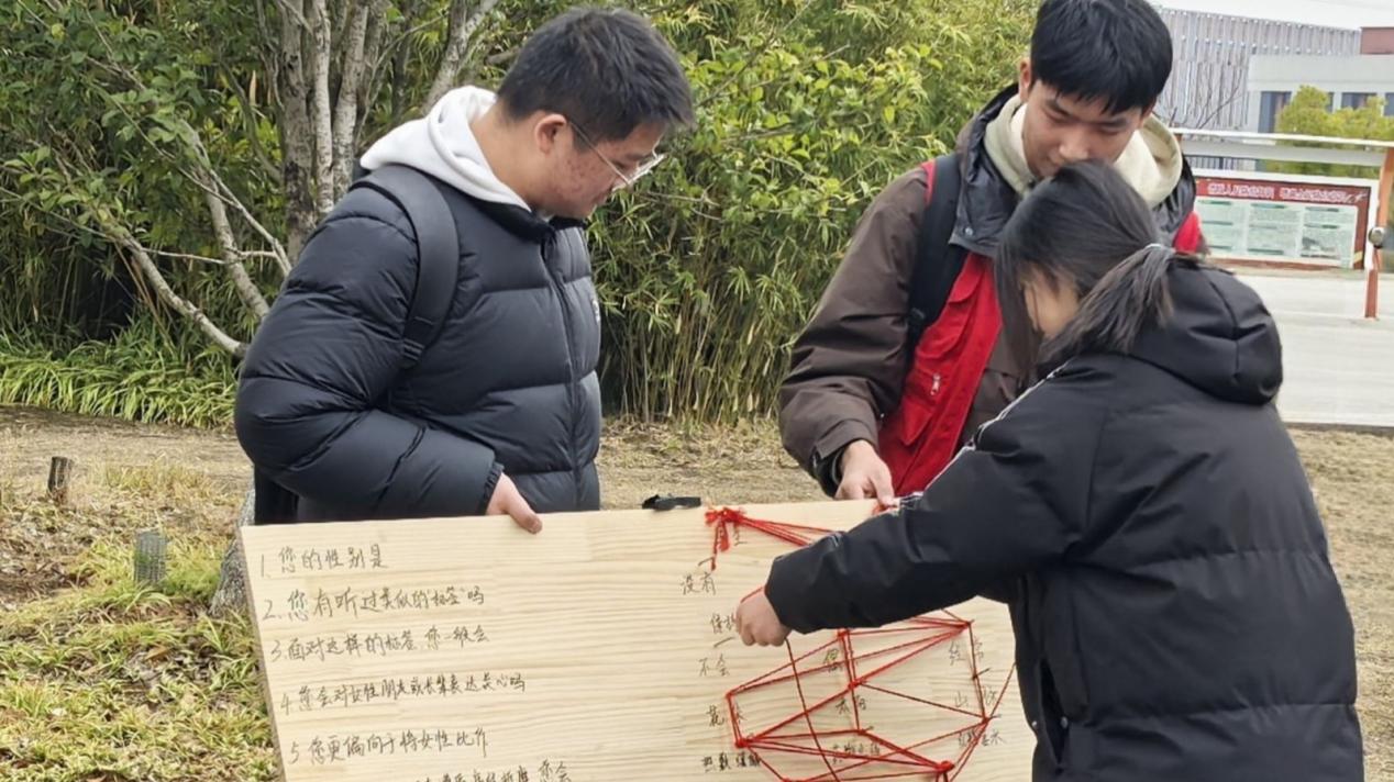 活动启动前,星火服务社成员提前来到活动现场精心布置了双层互动区:左侧立体板贴满古今束缚女性的刻板标签,右侧红绳绕钉问答板充满趣味。活动伊始,路过的同学们纷纷被精美温馨的活动现场吸引而来。志愿者们引导参与者了解规则后,人流自然分向两个体验区。撕标签互动区成为全场焦点。挂有"女性就该早早结婚生子"等刻板印象的立体板前,一位短发女生突然驻足。她目光灼灼锁定某张标签,利落撕下的瞬间,背面"人生节奏由你定义"的金句跃入眼帘。女生攥着纸片怔住,从愠怒到释然的情绪流转间,仿佛完成了对刻板印象的无声解构。随着被撕下的标签越来越多,展板逐渐显露出底色上"打破定义""生而自由"等烫金宣言,如同揭去蒙在社会认知上的陈旧滤镜。活动尾声,志愿者们为每位参与者送上鲜花。娇嫩花瓣映着年轻面庞,宛如无数个正在破茧的新生梦想。