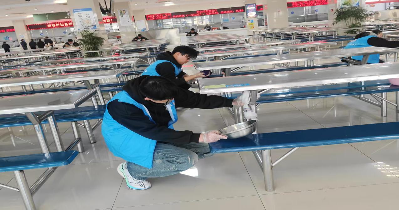 小小行动,大大改变。 在活动中,同学们分工明确,各司其职。第一组志愿者负责擦桌子,他们仔细清洁每一张餐桌,确保用餐环境的整洁卫生。第二组志愿者则负责拖地,他们用勤劳的双手,让食堂的地面焕发出洁净的光彩。第三组志愿者的任务是收盘子,他们协助食堂工作人员,及时清理餐桌上的餐具,保持餐桌的整洁有序。虽然只是些微不足的小事,但他们的行动却如春风般温暖了整个食堂。同学们纷纷表示,这样的公益活动不仅让食堂变得更加整洁有序,更让他们感受到了来自同龄人的关爱与温暖。