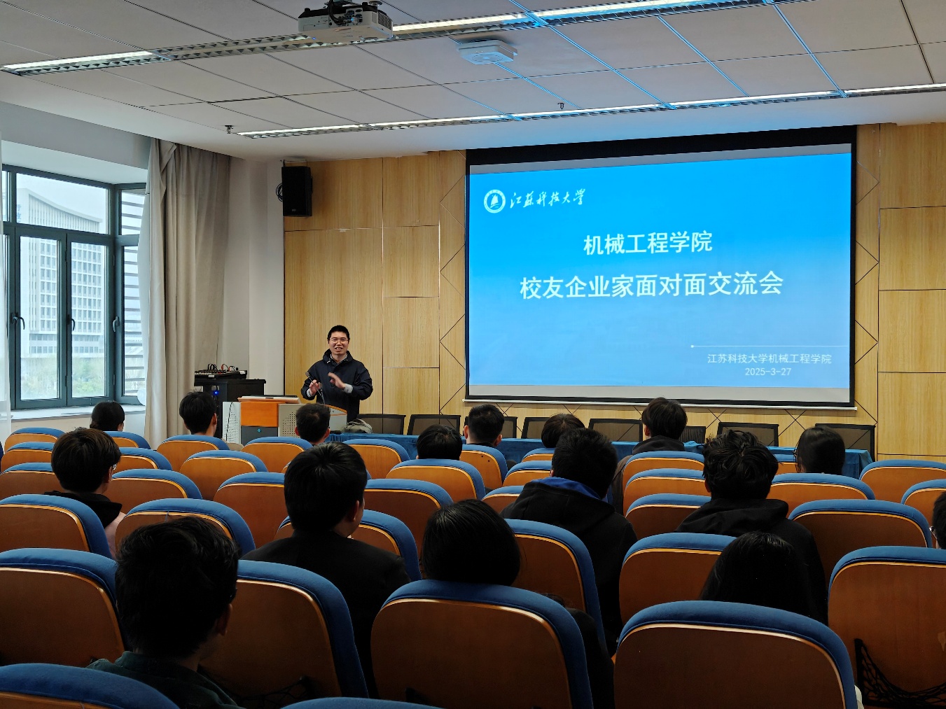 为深入贯彻党的教育方针,落实立德树人根本任务,进一步提升毕业生就业竞争力,引导学生树立正确的职业观和成才观,3月27日,江苏科技大学机械牛彩网 举办“校友企业家面对面交流会”。本次活动特别邀请上海虹璨实业有限公司总经理、机械牛彩网 08级优秀校友任云谦先生作主题分享,机械牛彩网 党委副书记谭海波出席活动并与学生互动交流。